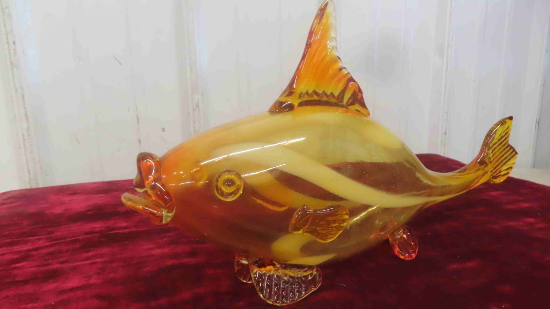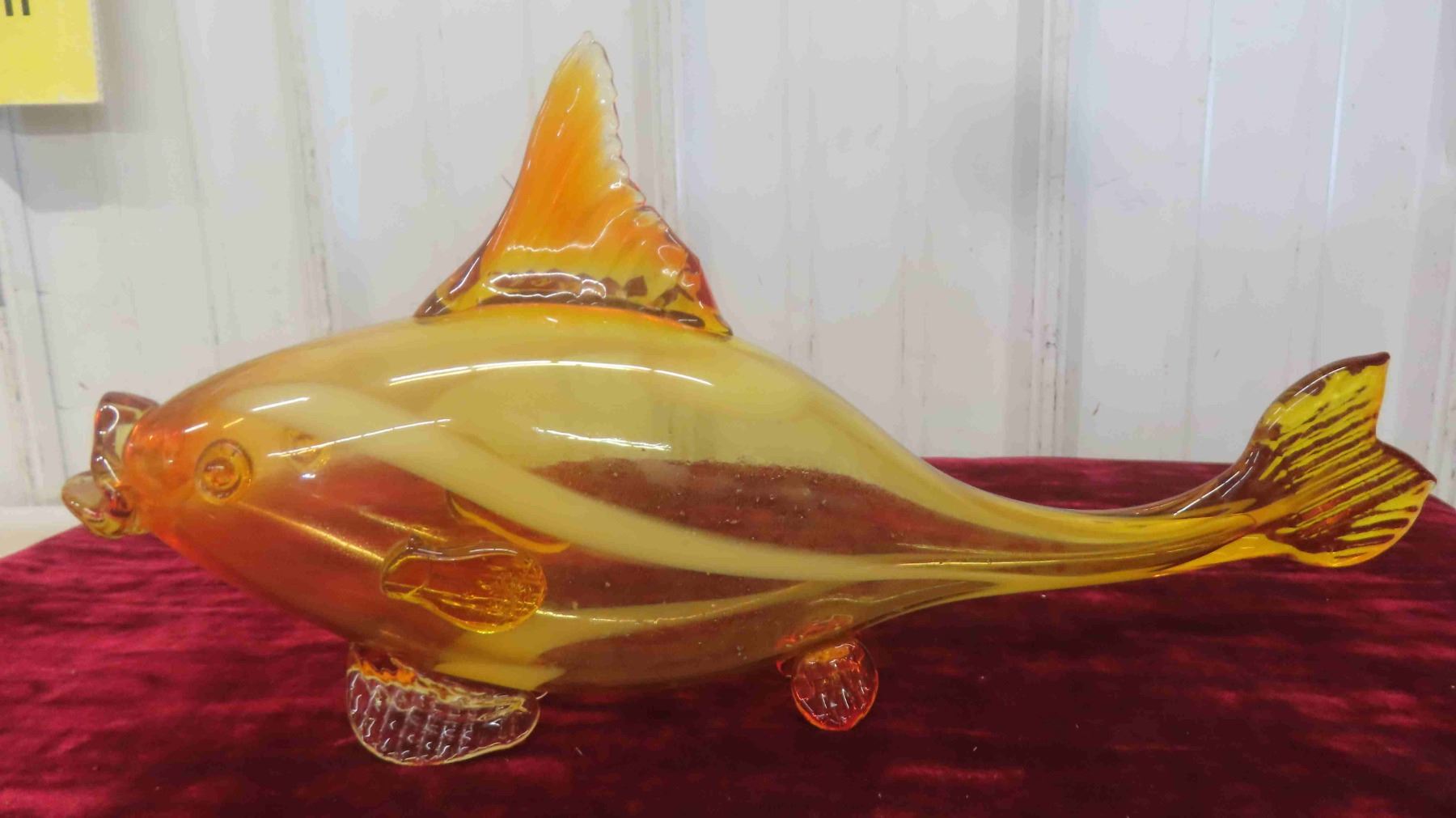 Orange Blown Glass Fish 16''L x 7 3/4''T