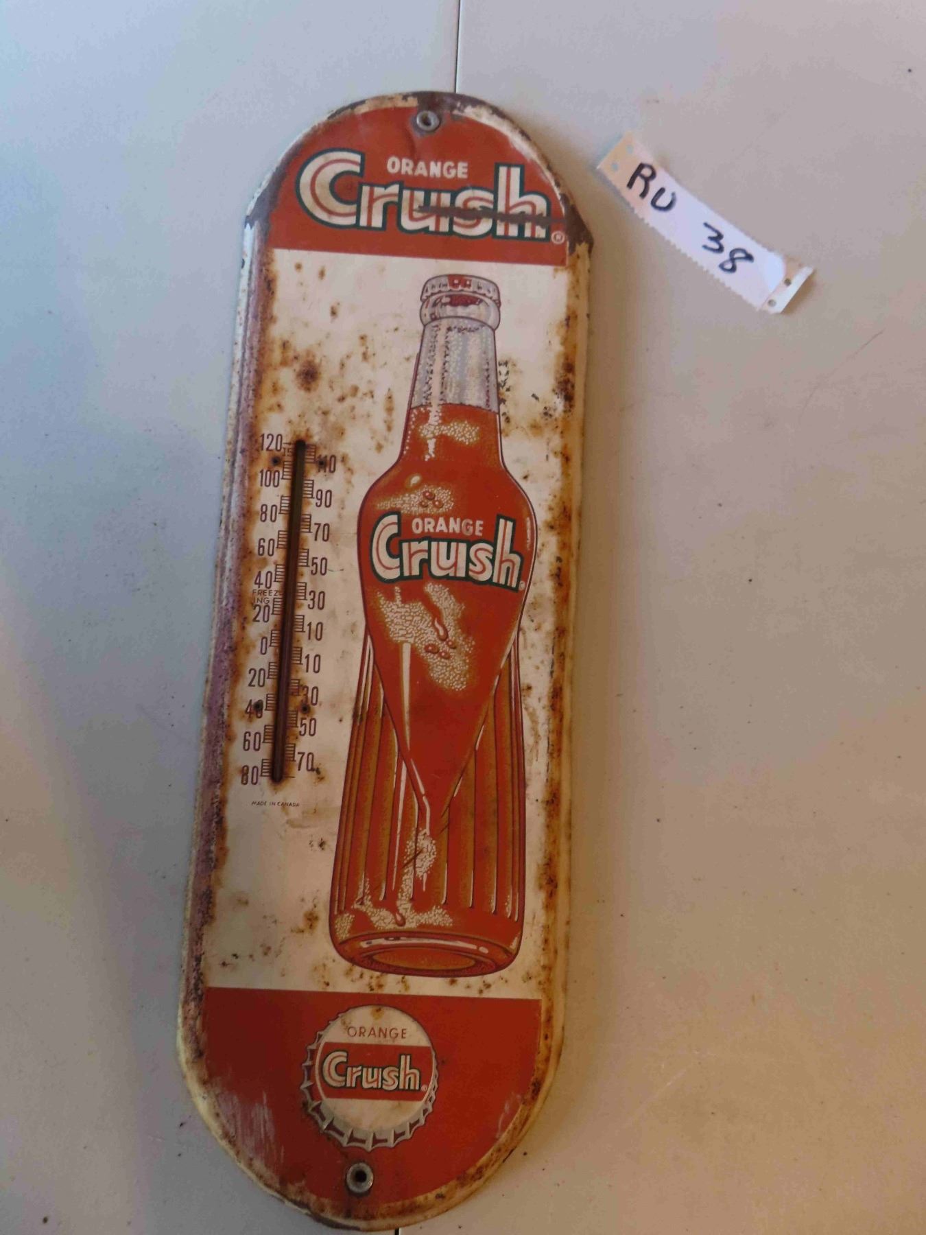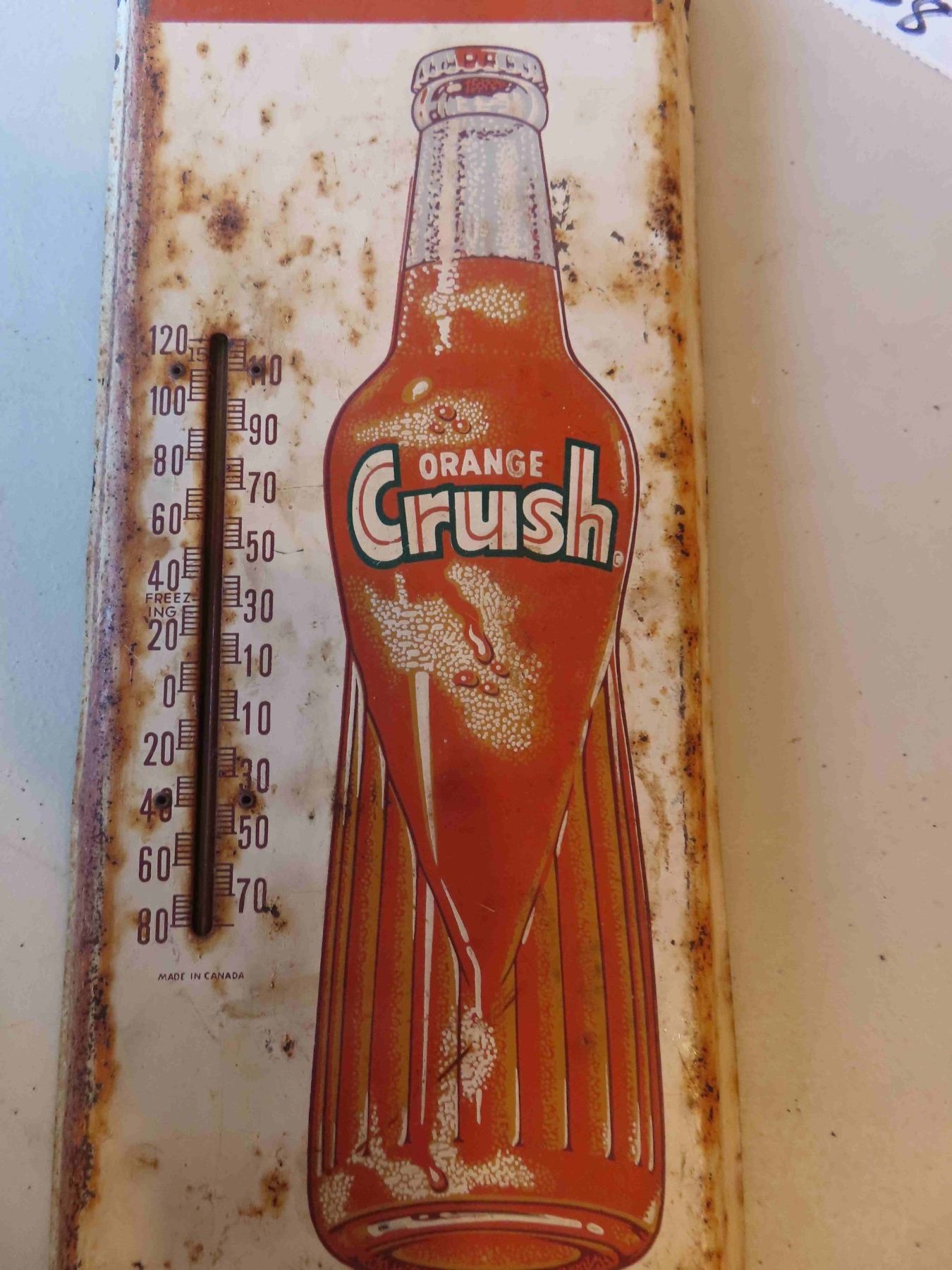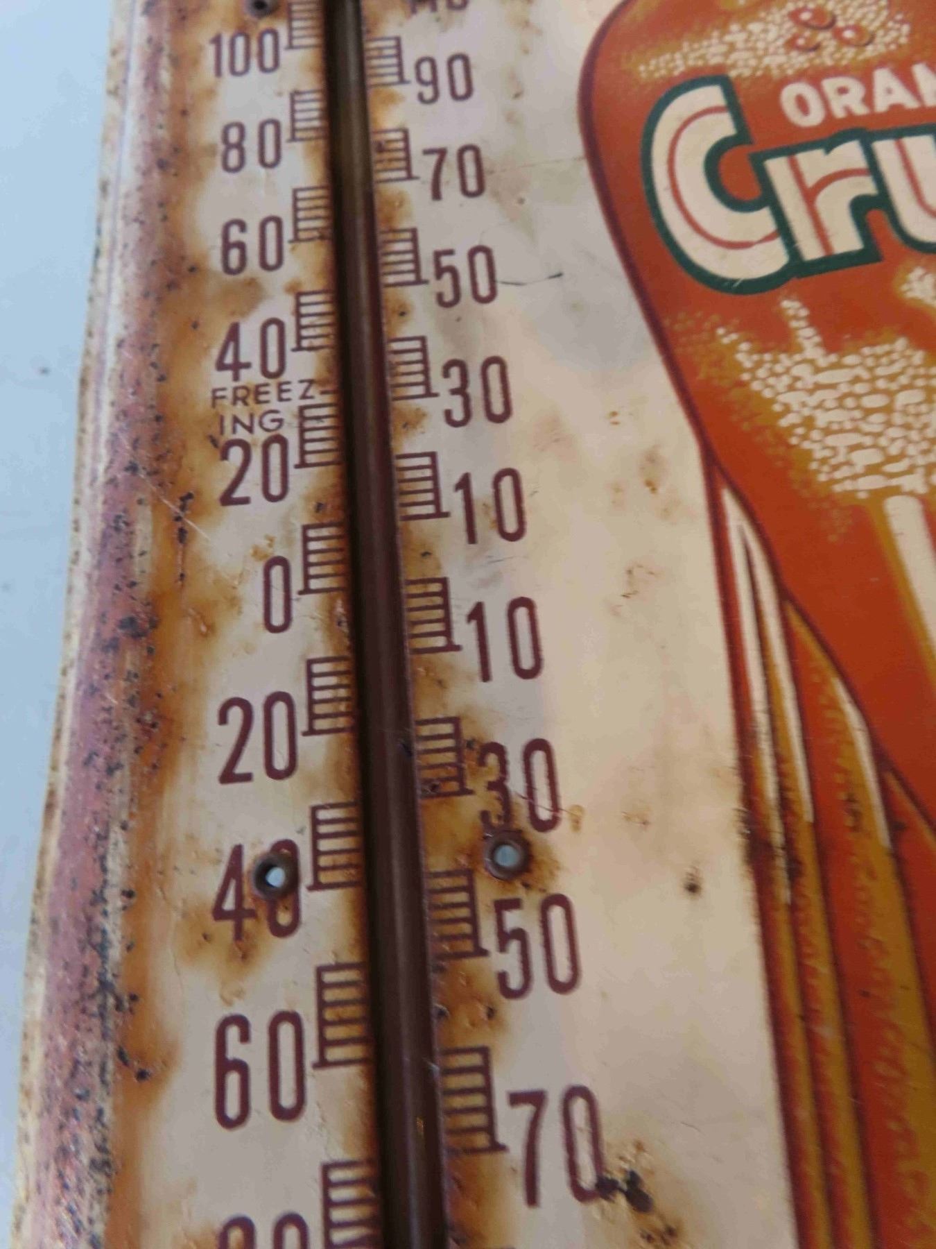 Orange Crush Bottle Metal Thermometer with Bulb 6'' x 19''