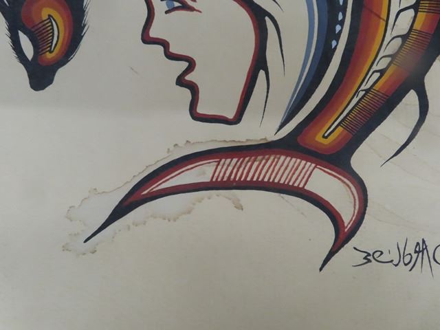Original First Nations Watercolor by Noted Artist Roger Kakepetum (seller notes; on Heavy Paper from Original Pad Never Framed) -18" x 24" , Signed Danny Dennis Framed Print 11" x 13.5"