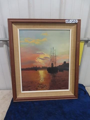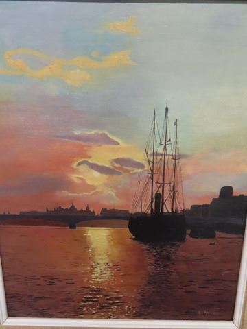 Original Oil Painting " Sunset on the Thames" by L.W. Morris (1965) 21" x 25"