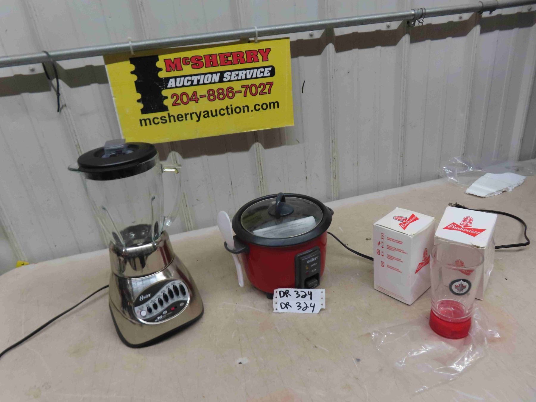 Oster 10 Speed Blender, Salton Slow Cooker, 2 Goal Light Jets Glass- Budweiser