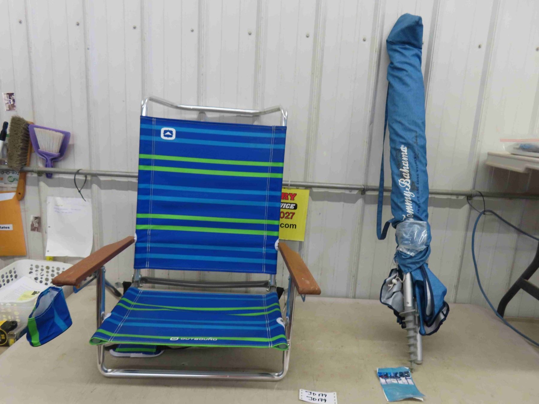Outbound Beach Chair with Cupholder, Tommy Bahama Screw in Umbrella Pole