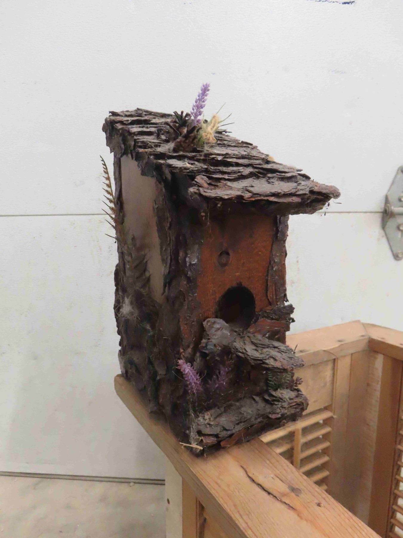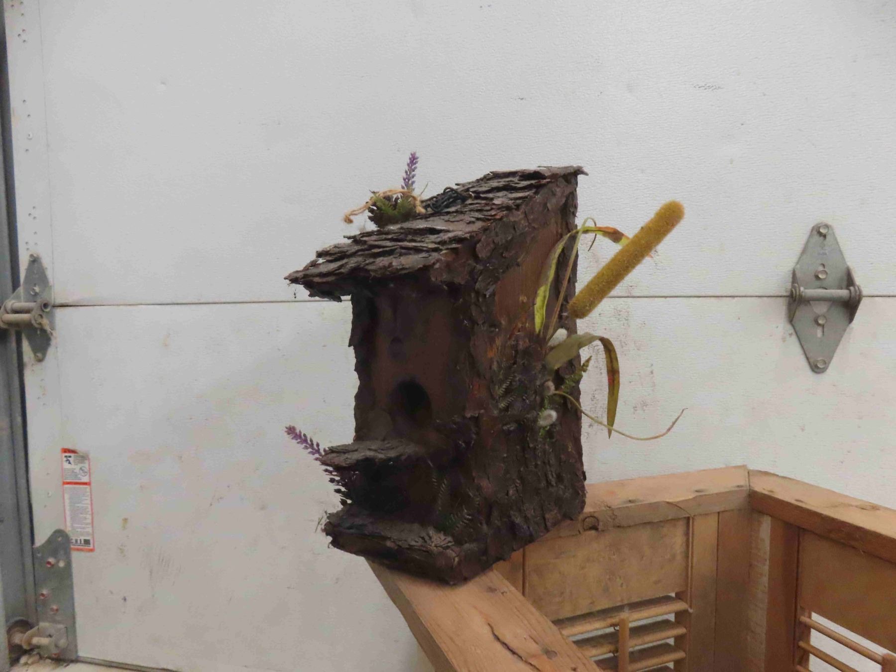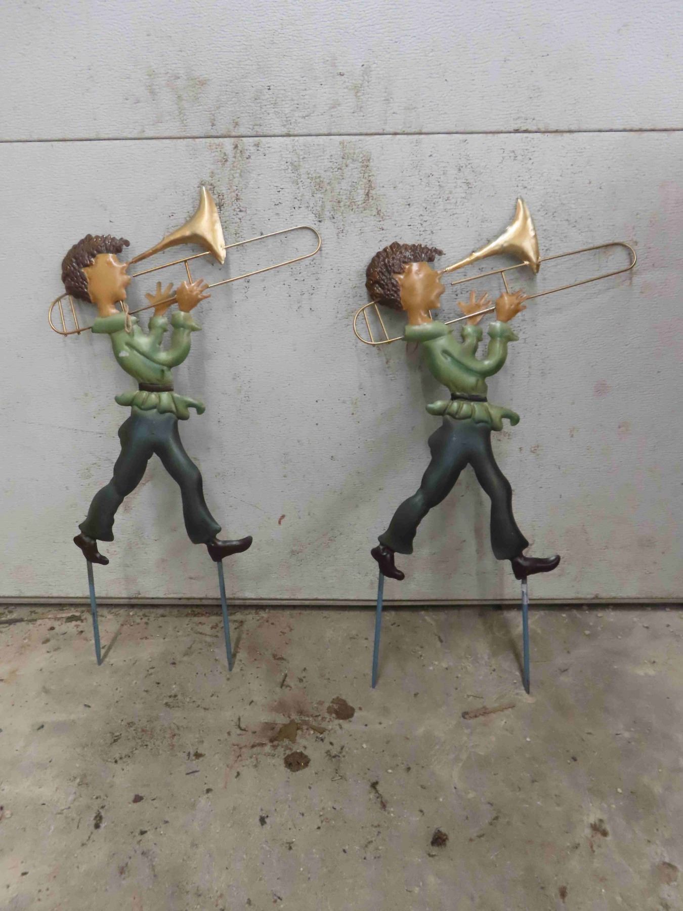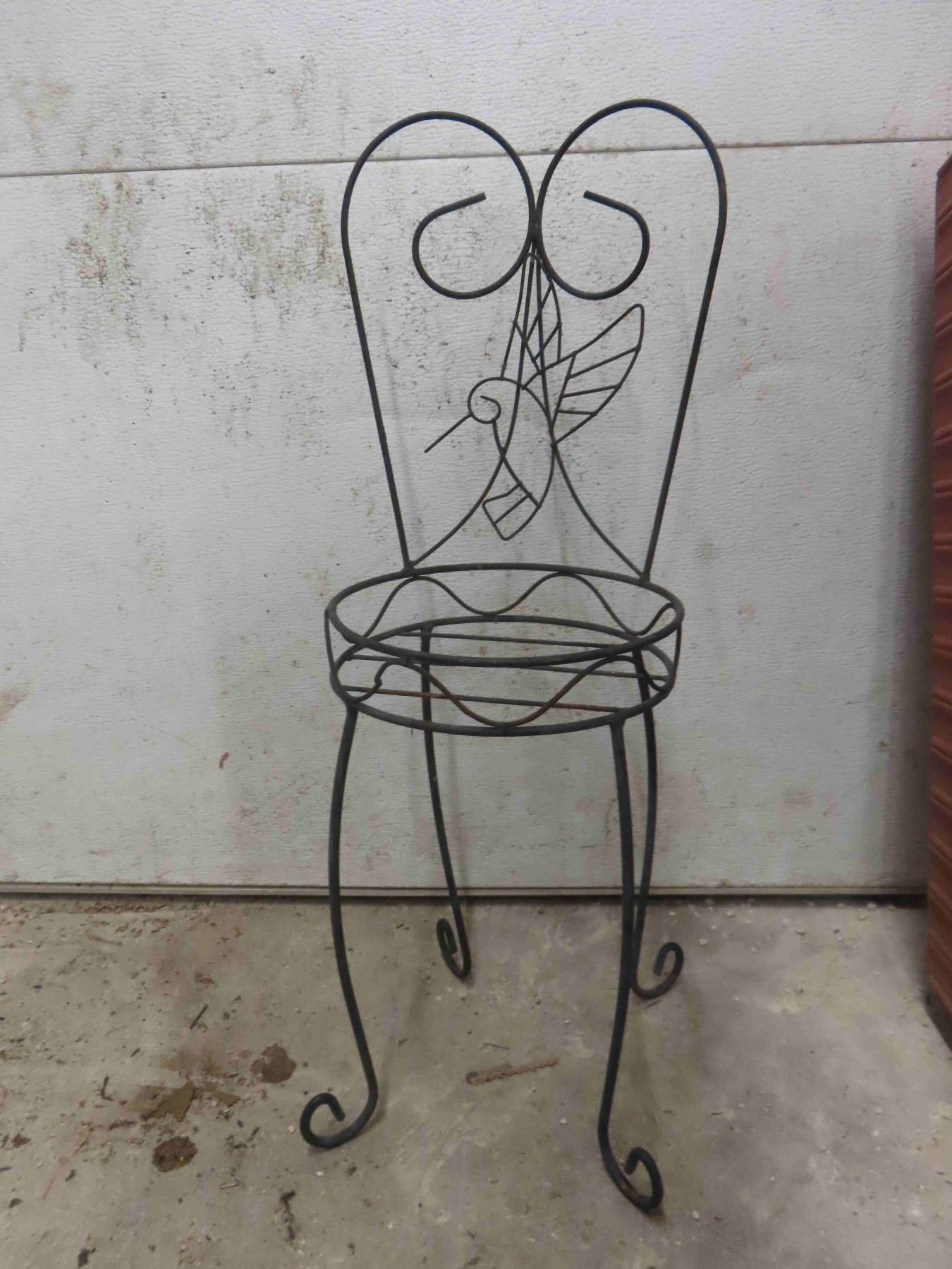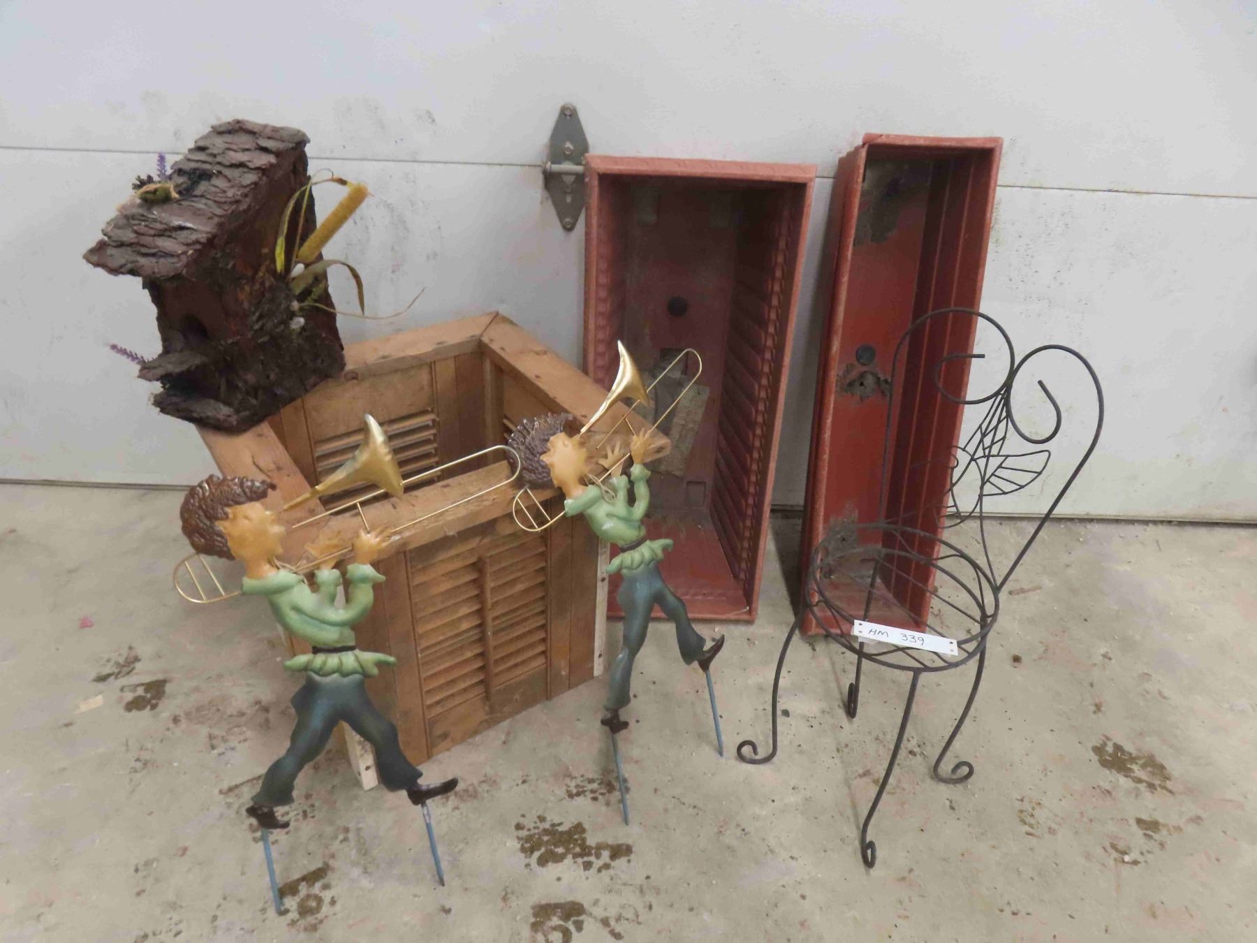 Outdoor Décor Plastic Planters, Bird House, Wrought Iron Chair, 2 Garden Musicians