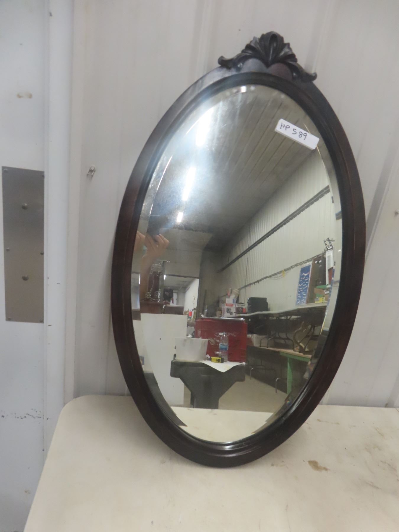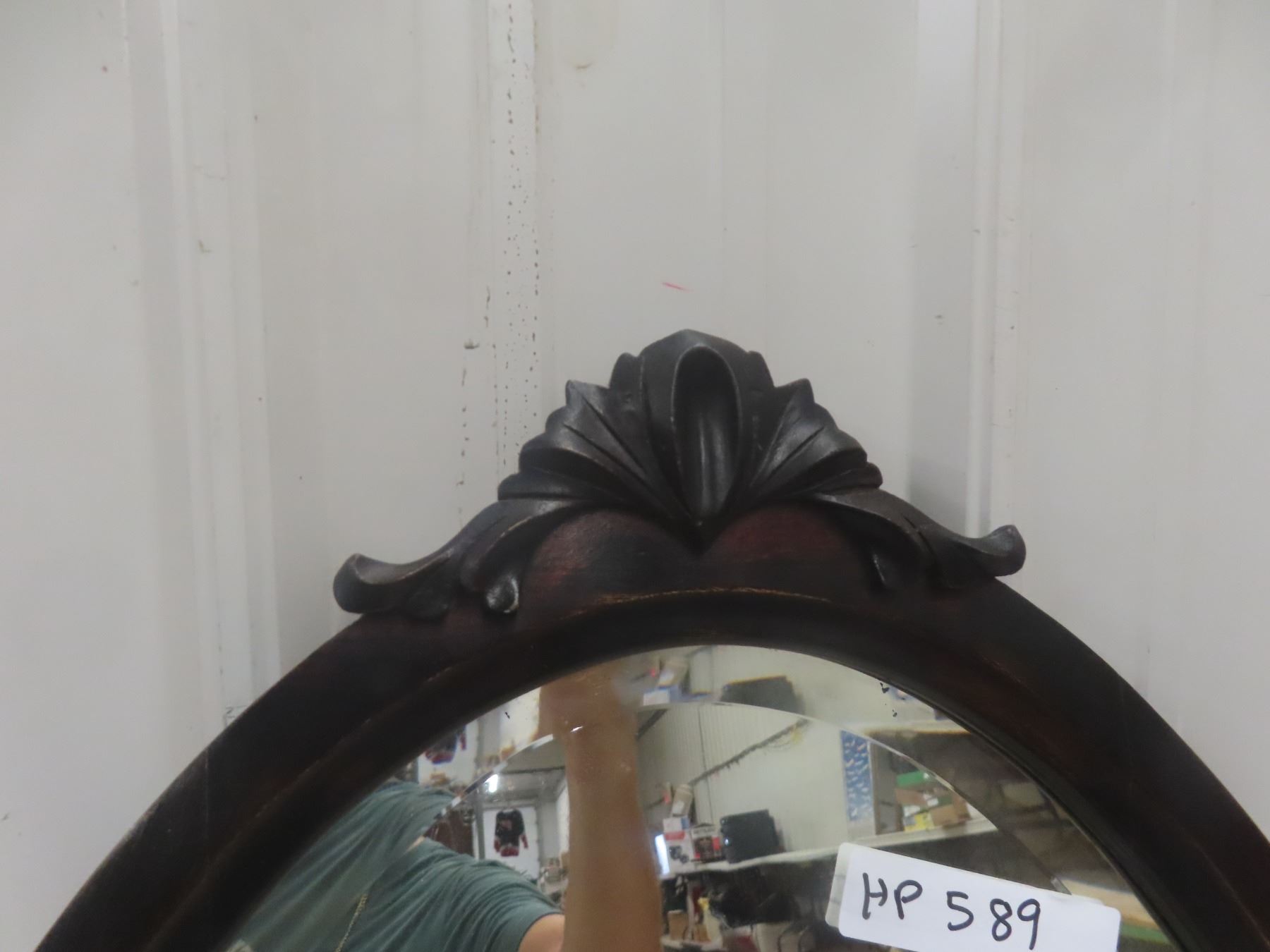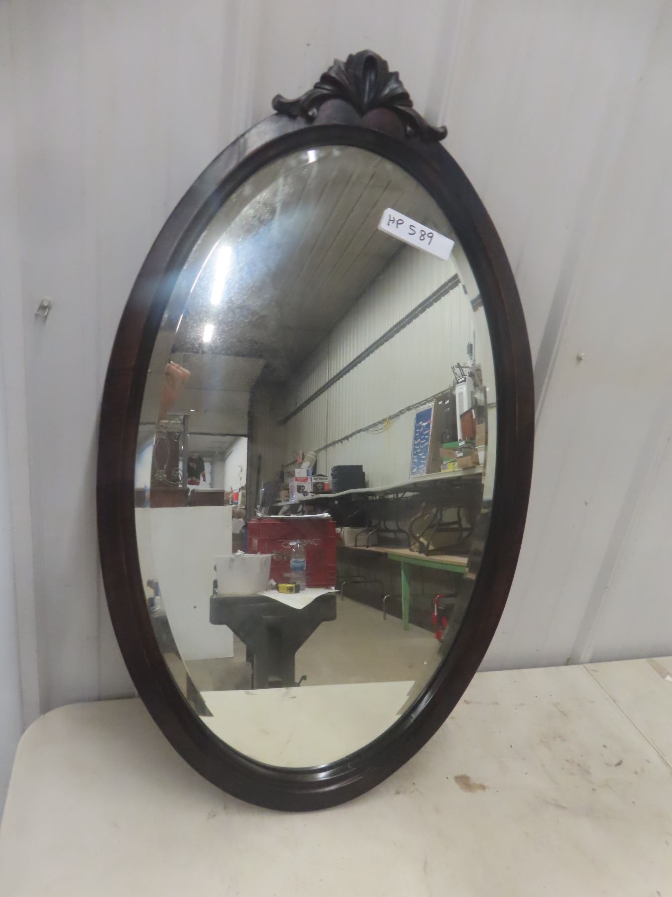 Oval Antique Wood Framed Beveled Mirror 35t"x 20"