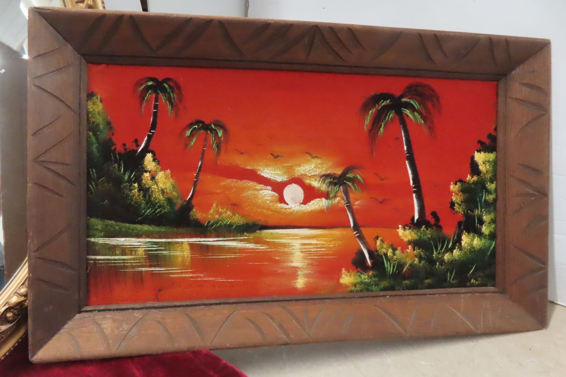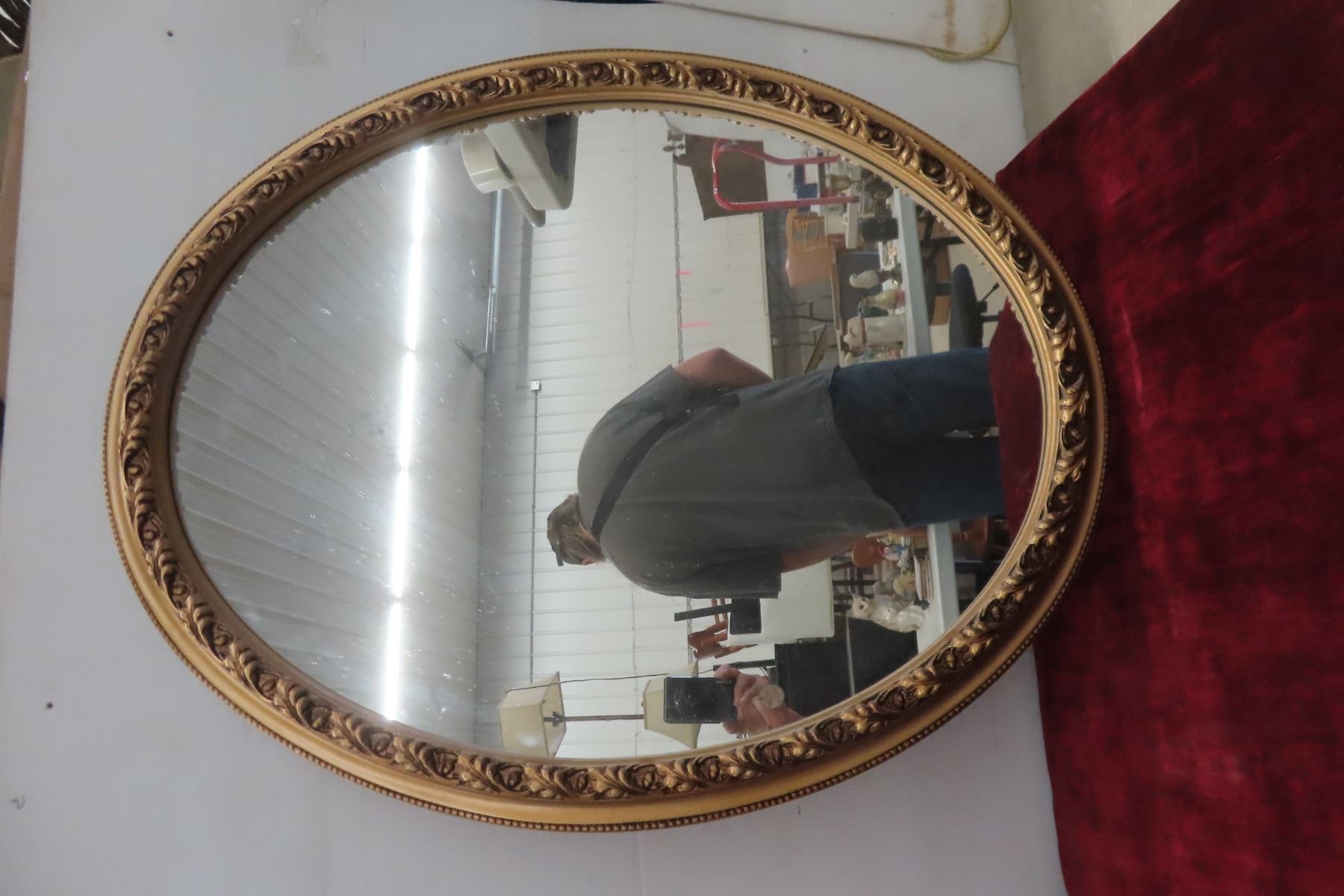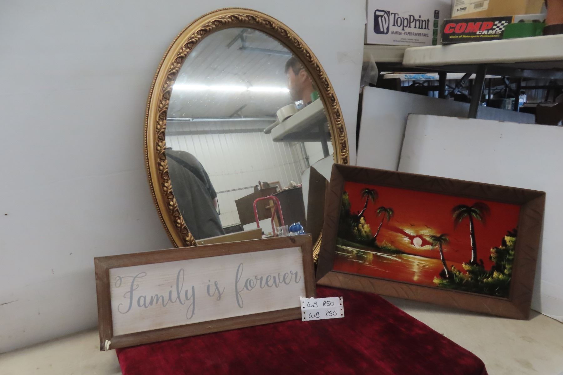 Oval Framed Mirror 31x25 Velvet Style Picture 14x23 and Slogan Sign