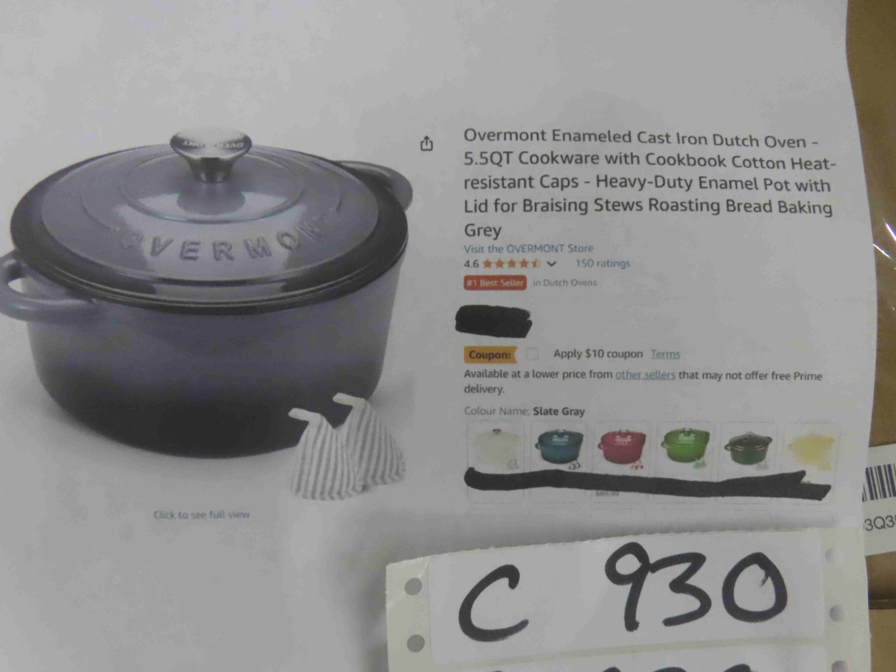 Overmont Enameled Cast Iron Dutch Oven - 5.5QT Cookware with Cookbook Cotton Heat-resistant Caps - Heavy-Duty Enamel Pot with Lid for Braising Stews Roasting Bread Baking Grey - New or Store Return