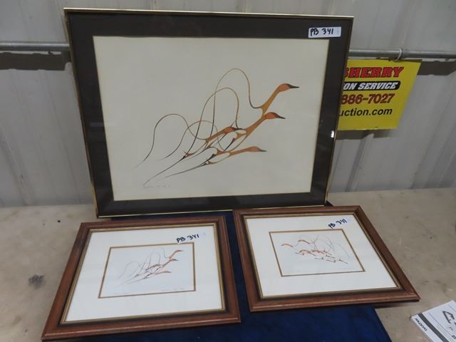 (PB)3 Pcs Native Art by Benjamin Chee Chee 1) 28" x 22" & 2) 16" x 44"