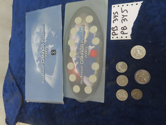 (PB) Millenium Canada 2000 Coin Set. 1970 Canada 50 Cent Coin, 1939 Florin, Wpg Centennial Coin, Inco Thompson Centennial Token/Coin, Canada PEI Dollar Coin Centennial & 1977 Elizabeth Coin