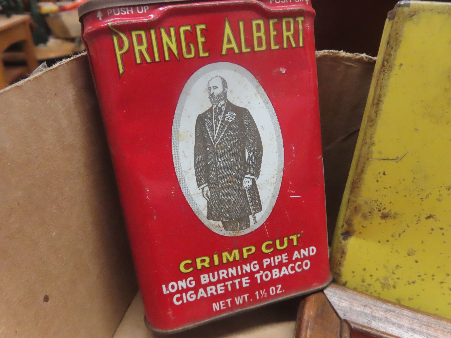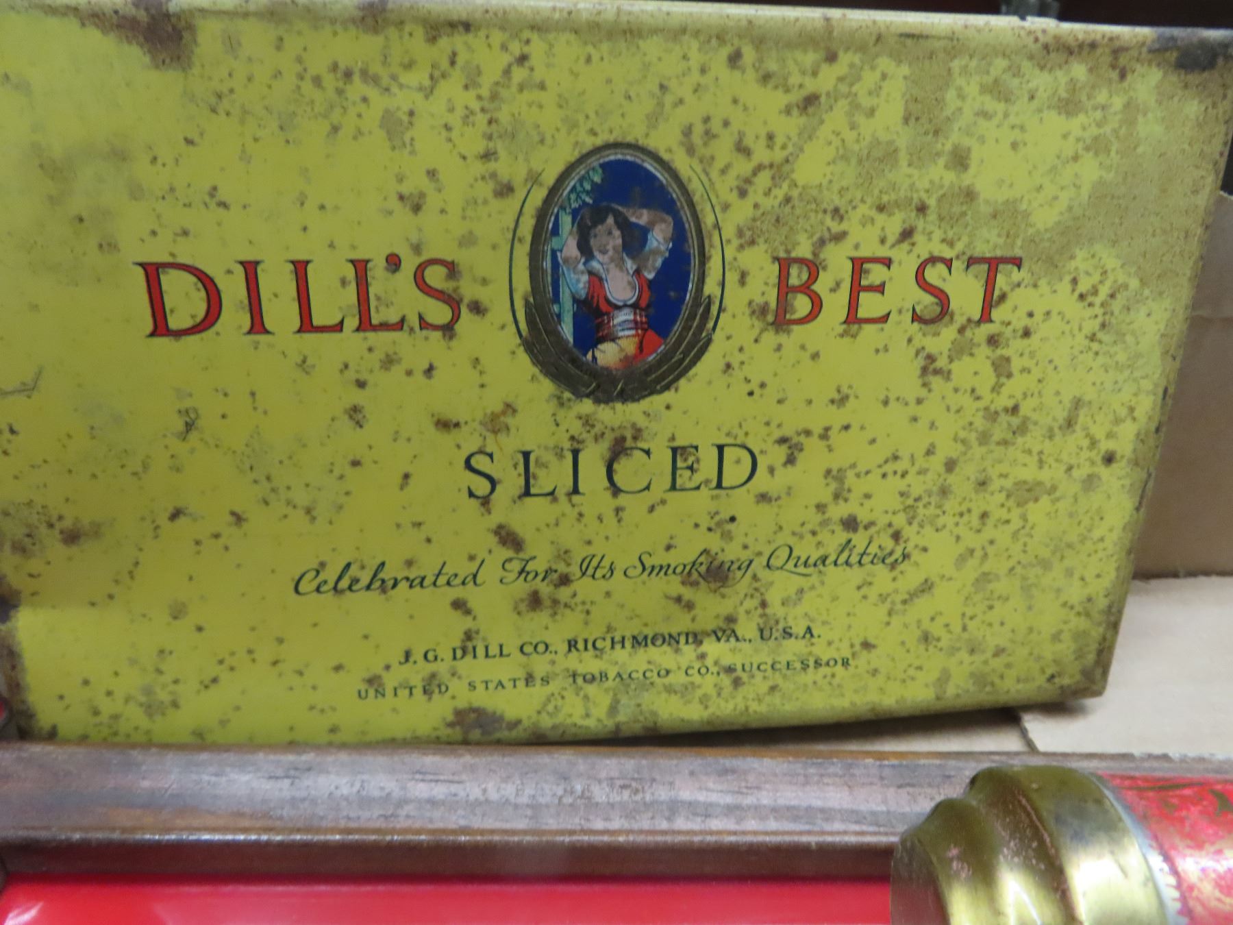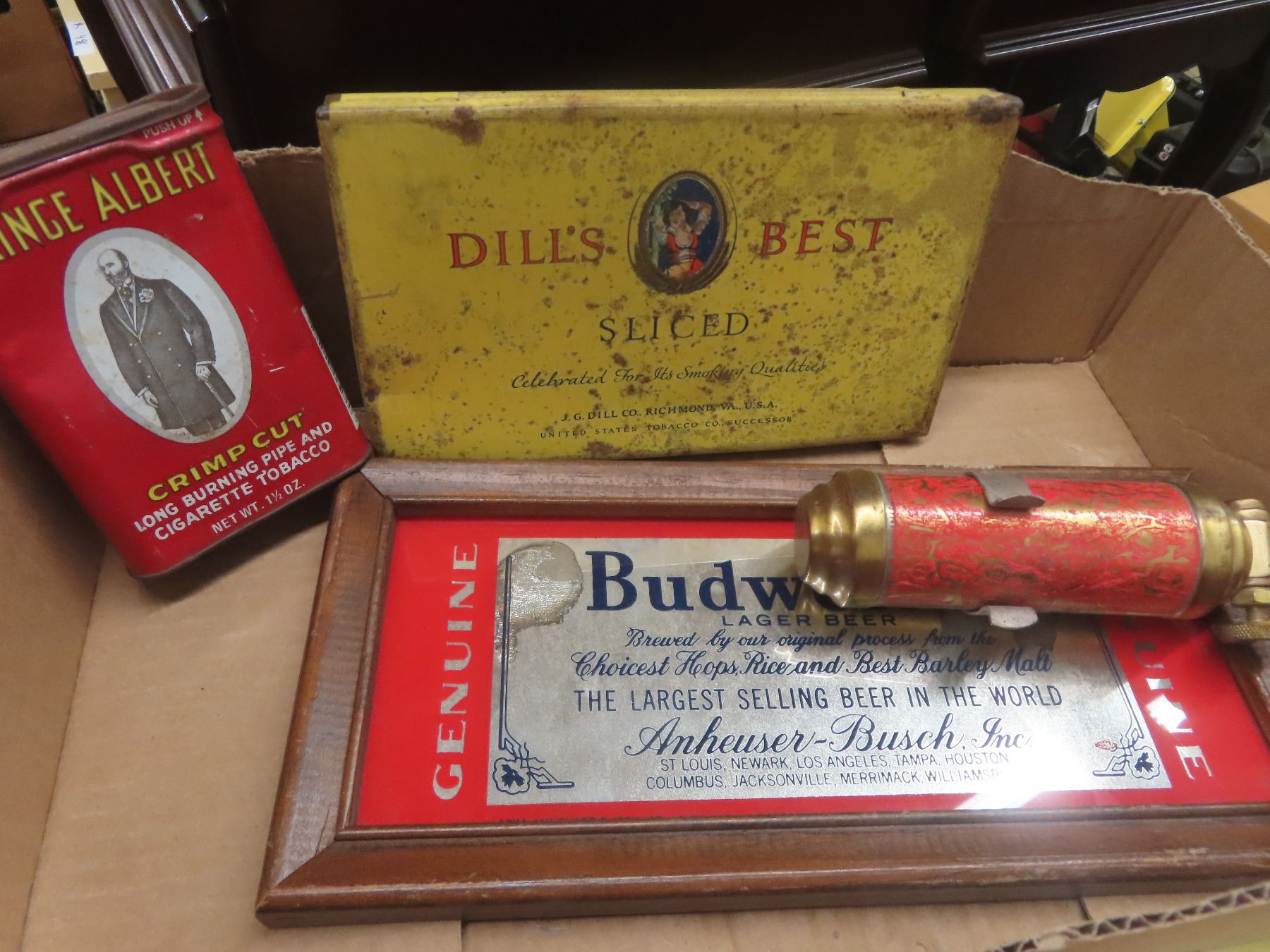 Pabst Beer Sign, Budweiser Sign, Tobacco Tins Small Fire Extinguisher