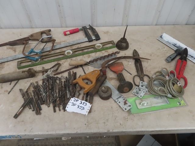 Pad Lock, Drill Bits OddsnEnds of Tools; Tin Snip, Saws, Clamp plus more