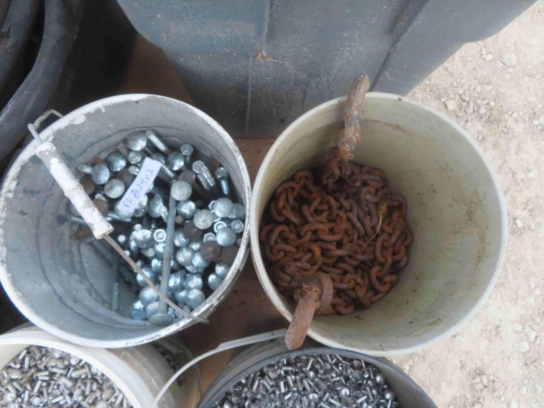 Pail of Chain , Pail of 9 1/2'' Bolts