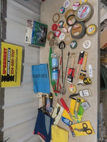 Paint Brushes, Misc. Tape, Scrapers, Respirator, Paint Mixers, Aprons, Small Tarp plus more - most n