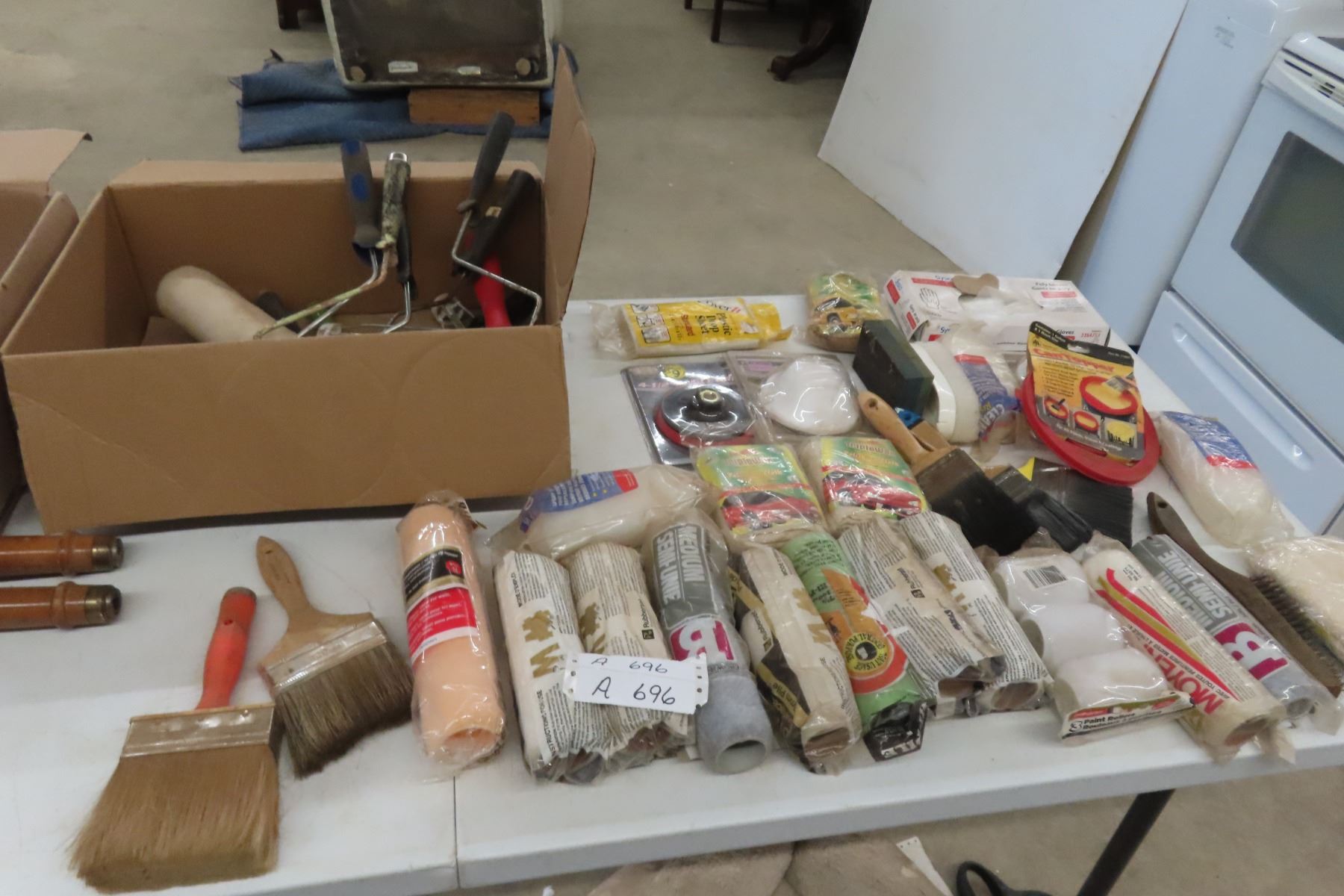 Paint Supplies, Roller Sleeves, Cages, Brushes, Plastic Gloves, Drop Sheet