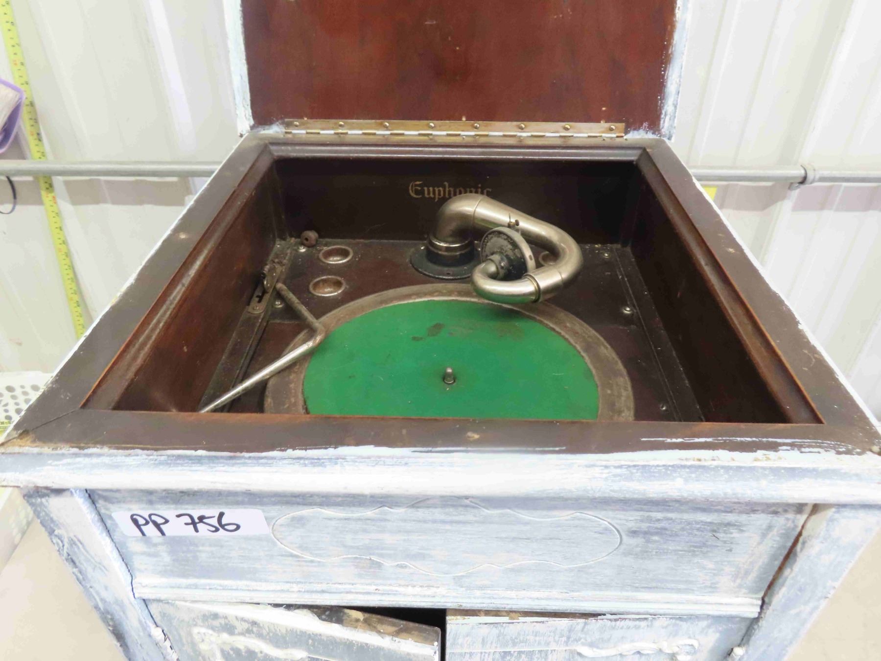 Painted Vintage Euphonic Gramophone/Record Player Cabinet