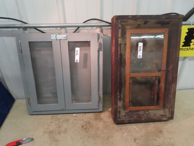 Painted Wall Mount Display Case 20" x 20" & Old Clock Converted into a Display Case 15" x 25"
