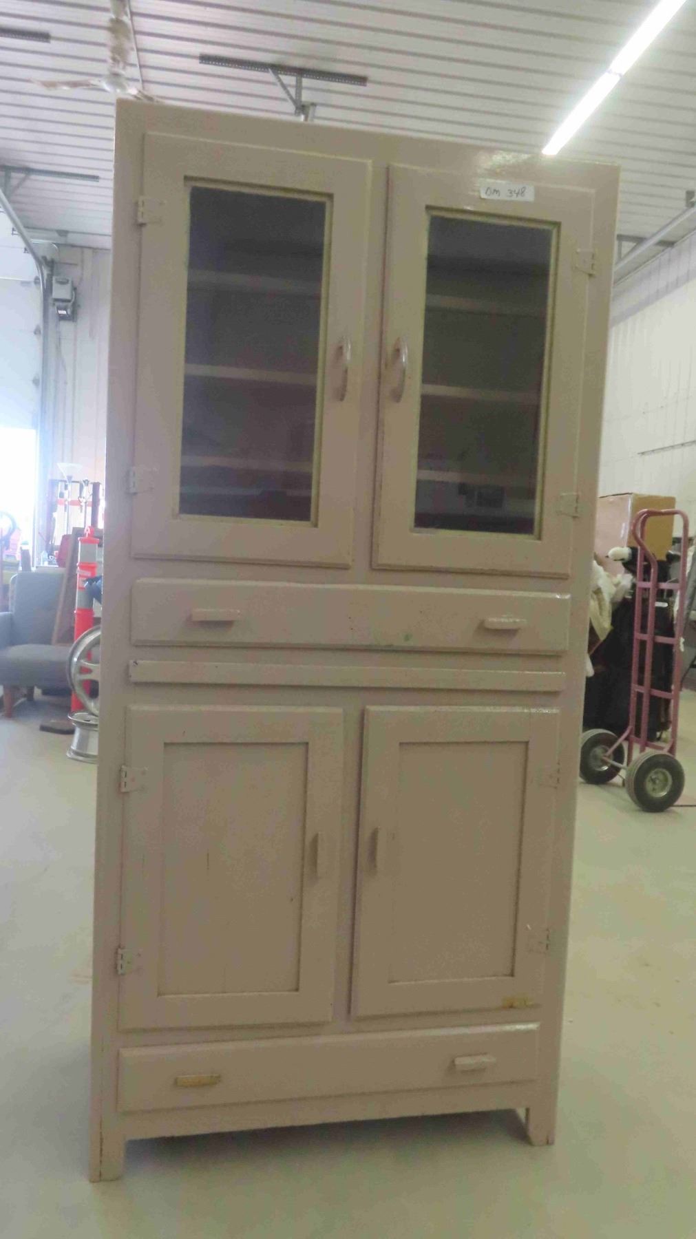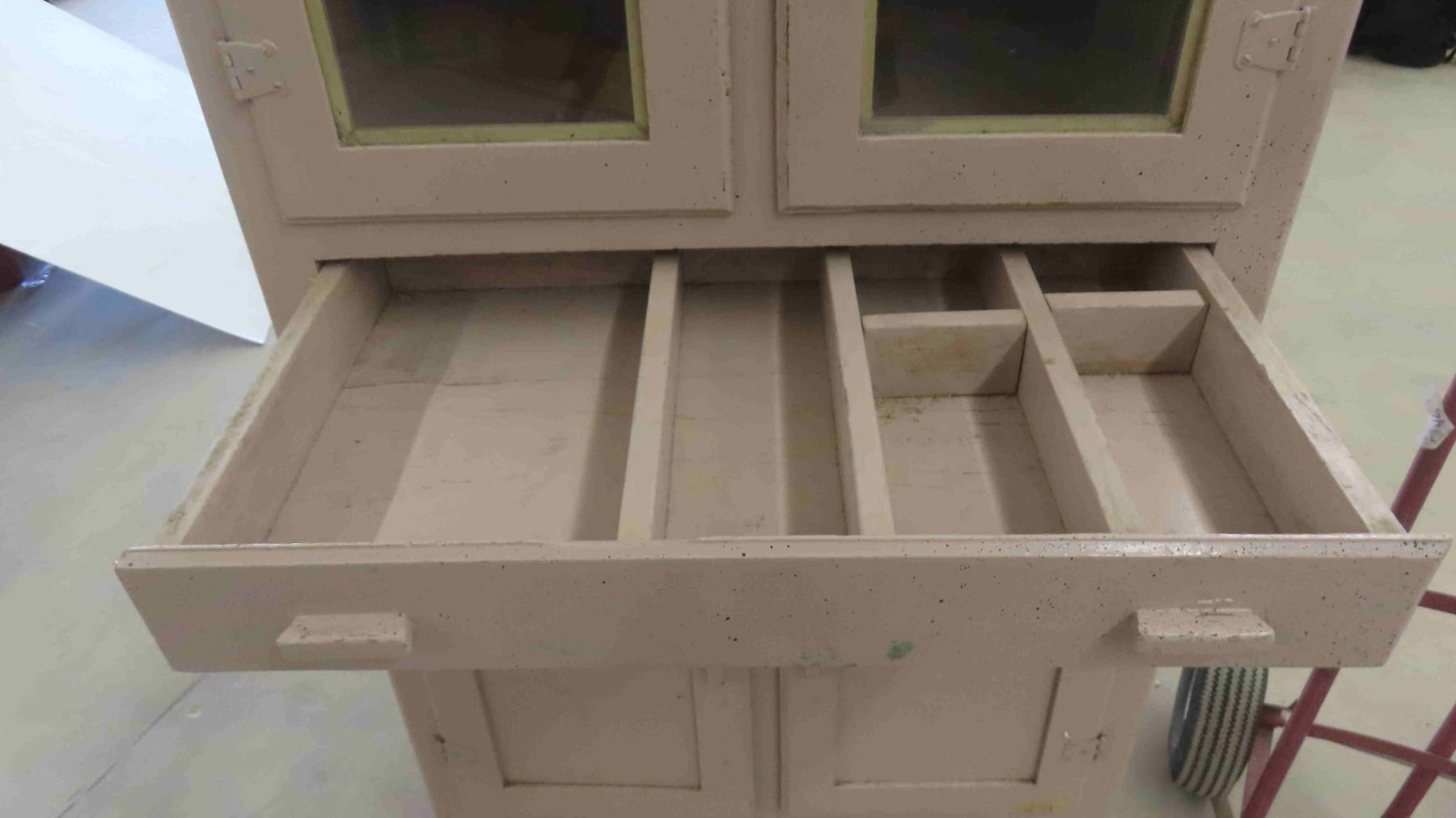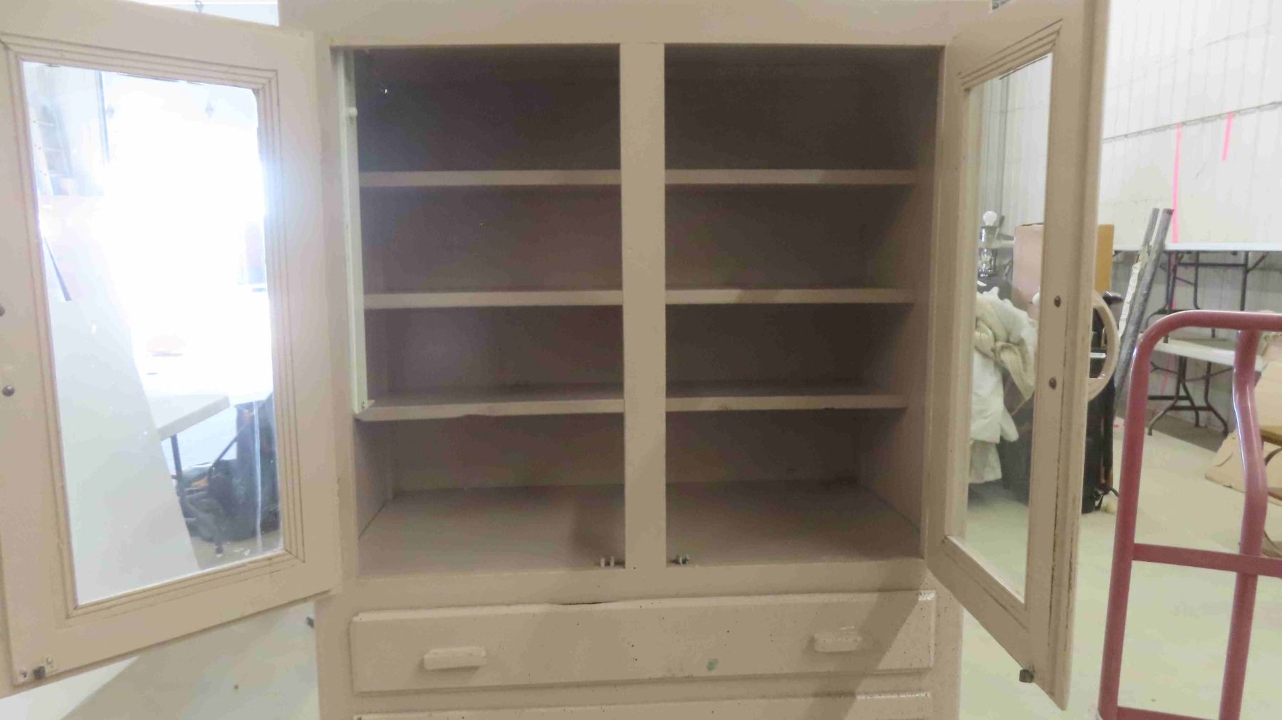 Painted Wood Pantry with Glass Doors, Pull Out Cutting Board, Cutlery Drawer 32'' x 18'' x 66'' H