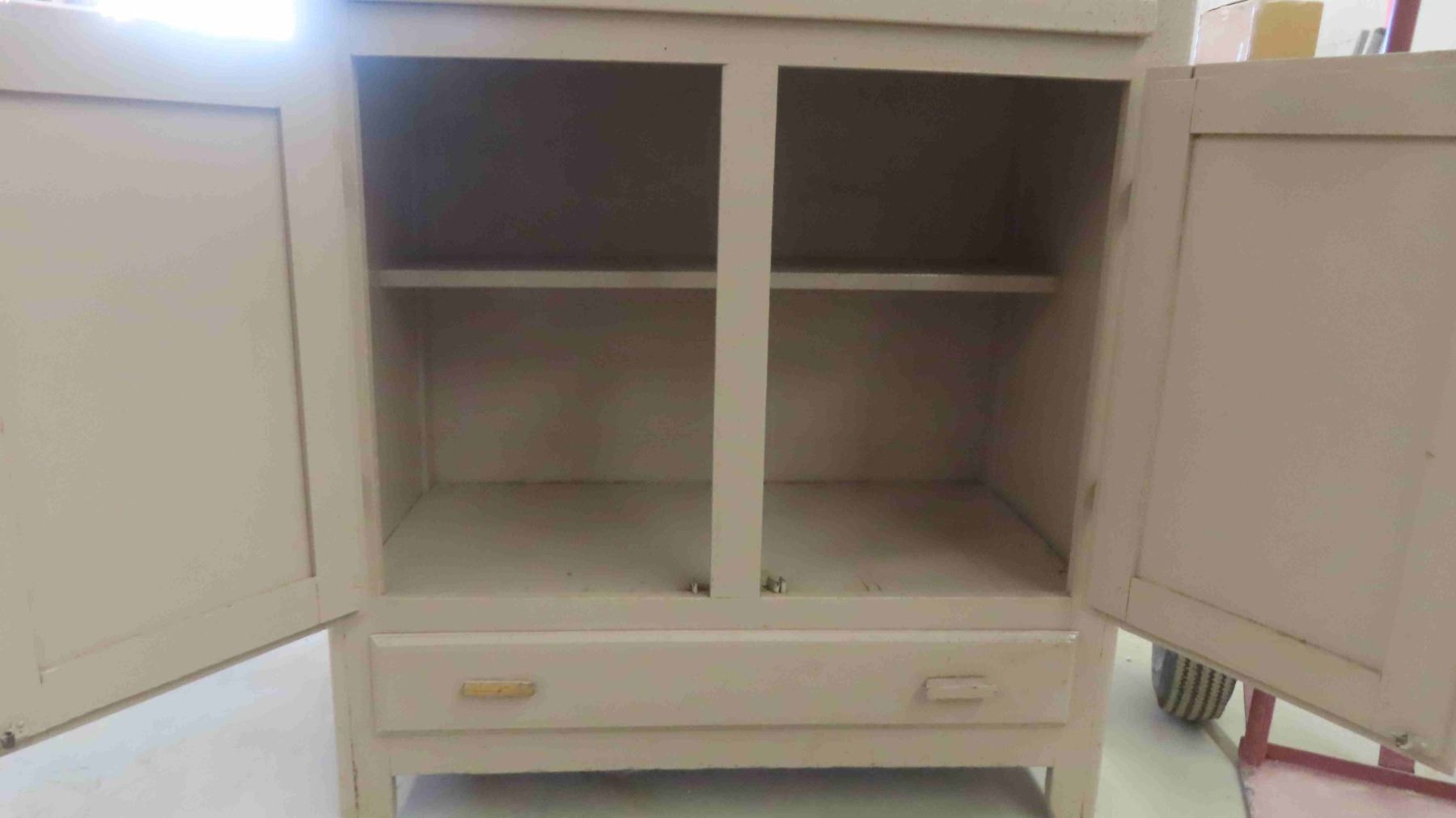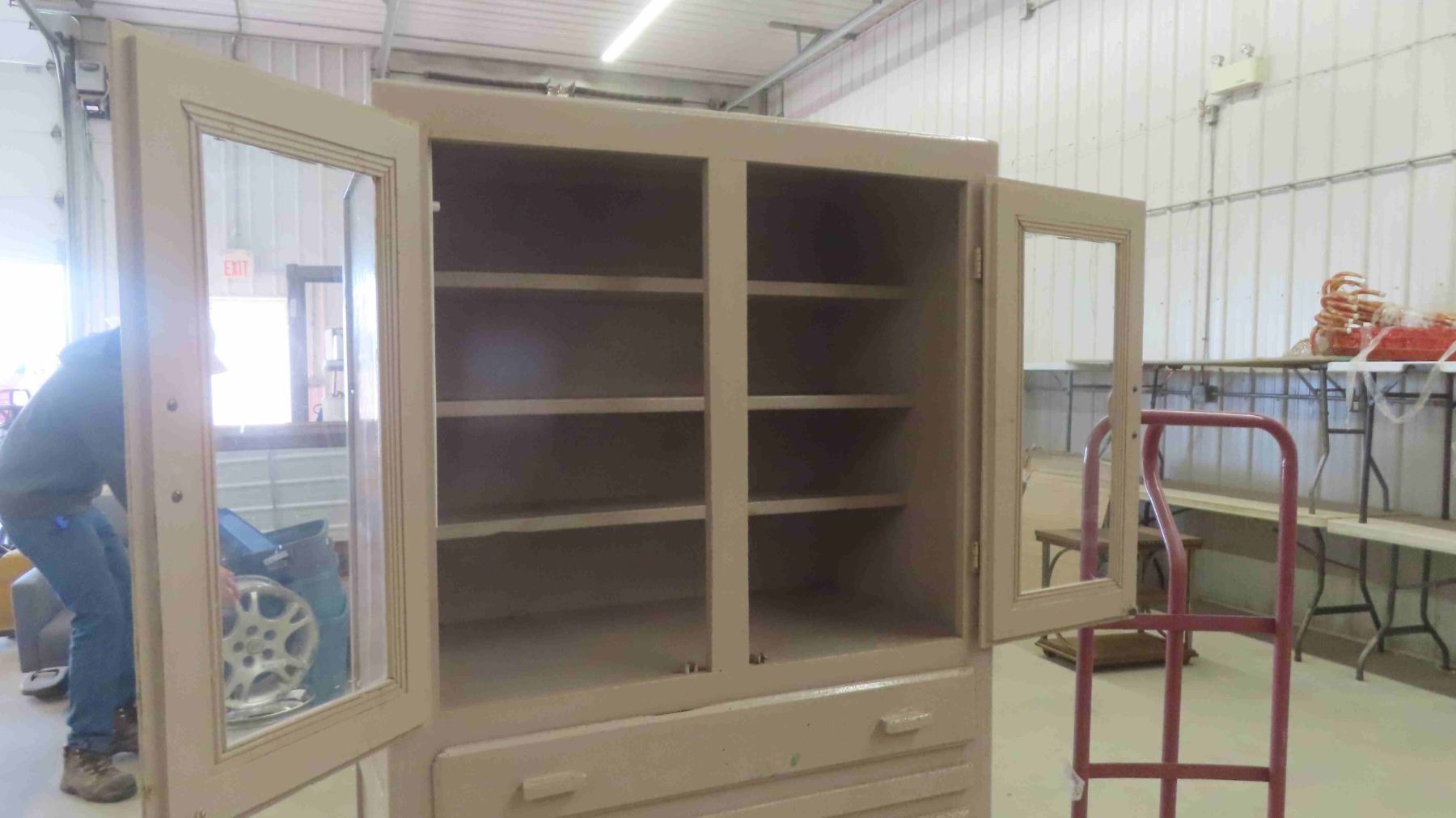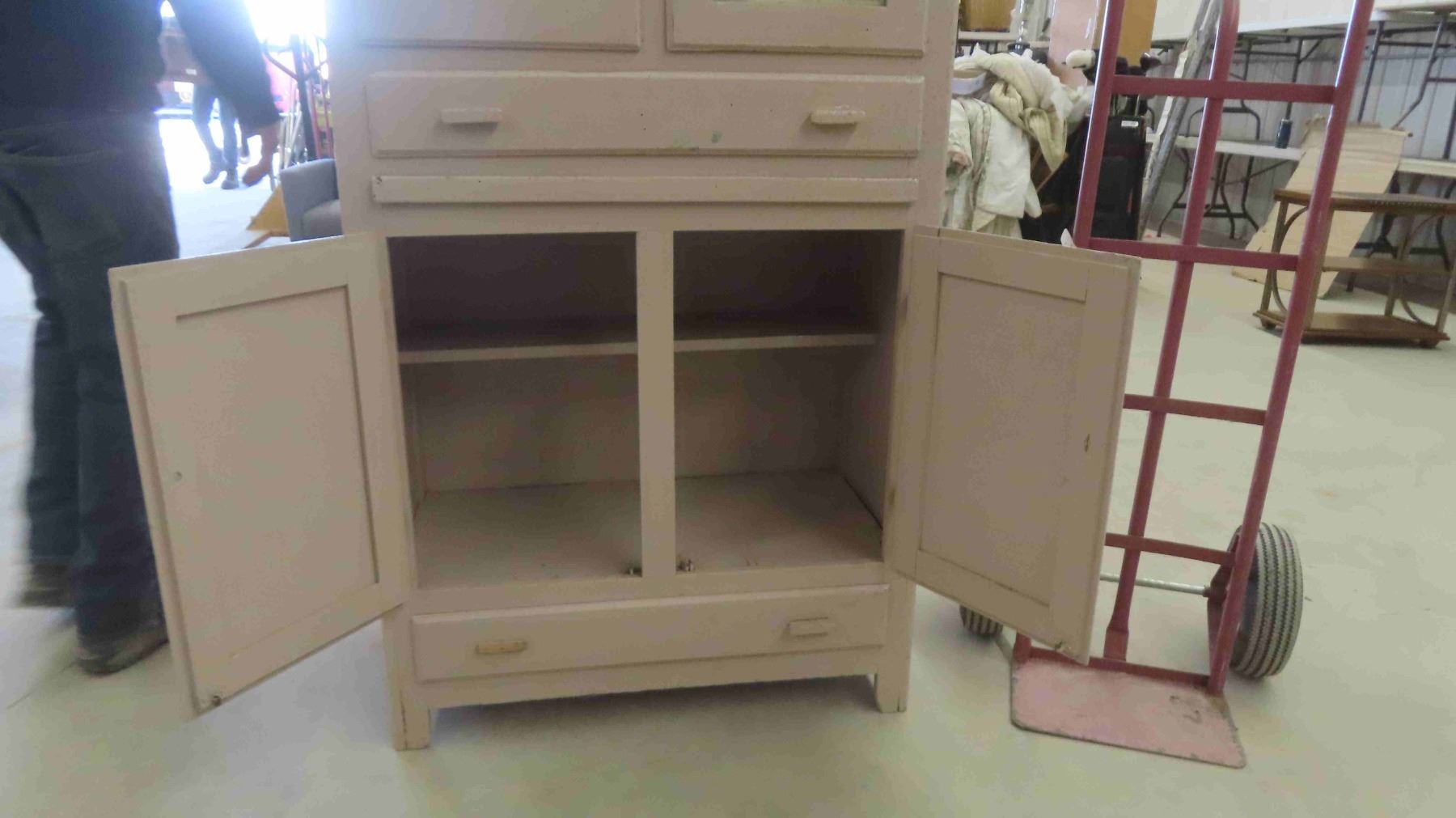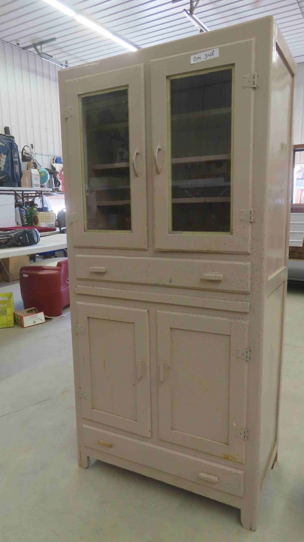 Painted Wood Pantry with Glass Doors, Pull Out Cutting Board, Cutlery Drawer 32'' x 18'' x 66'' H