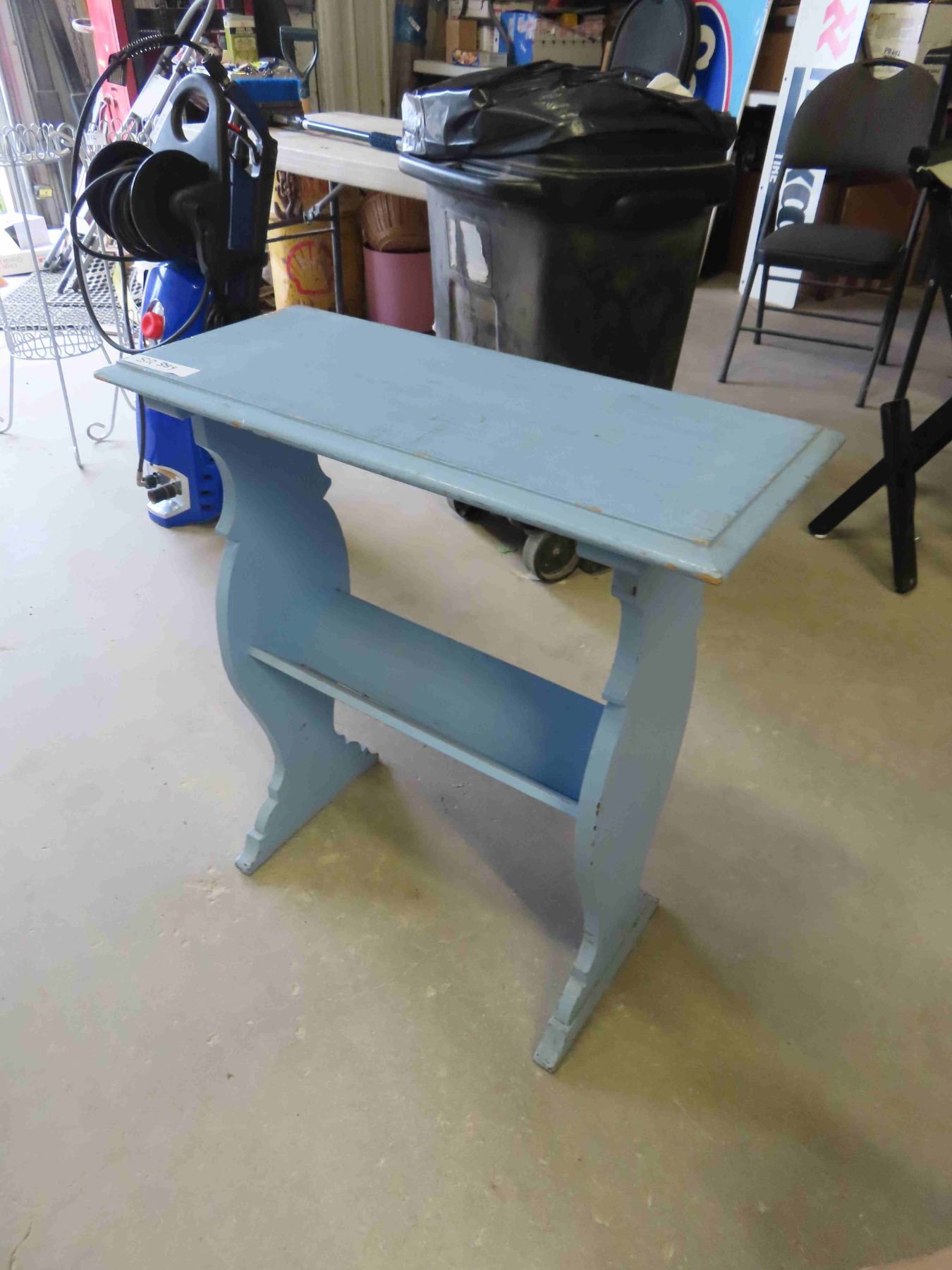 Painted Wood Table with Bookshelf 12" x 27" x 29"