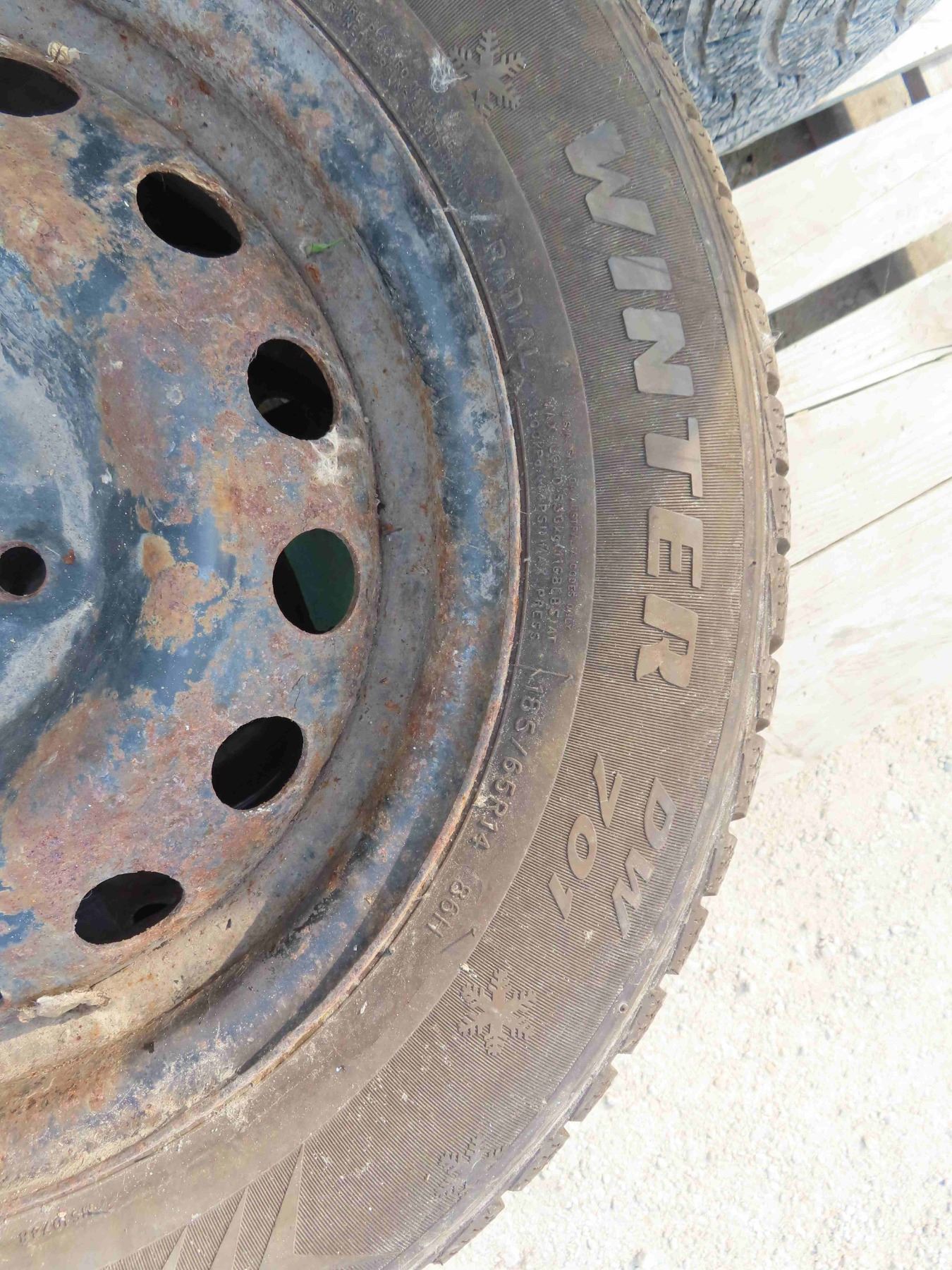 Pair of 4 Bolt Rims with Dynamo 185-65 R14 Winter Tires - Good Tread
