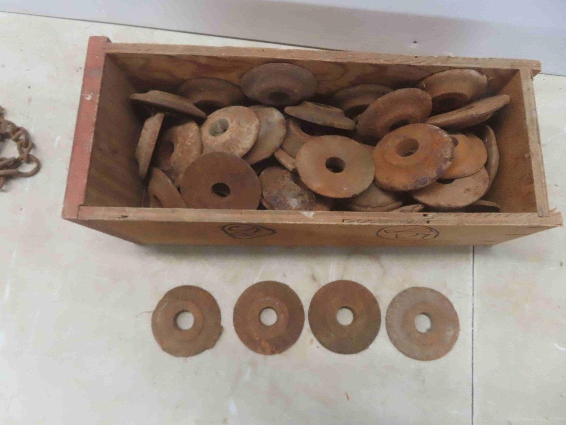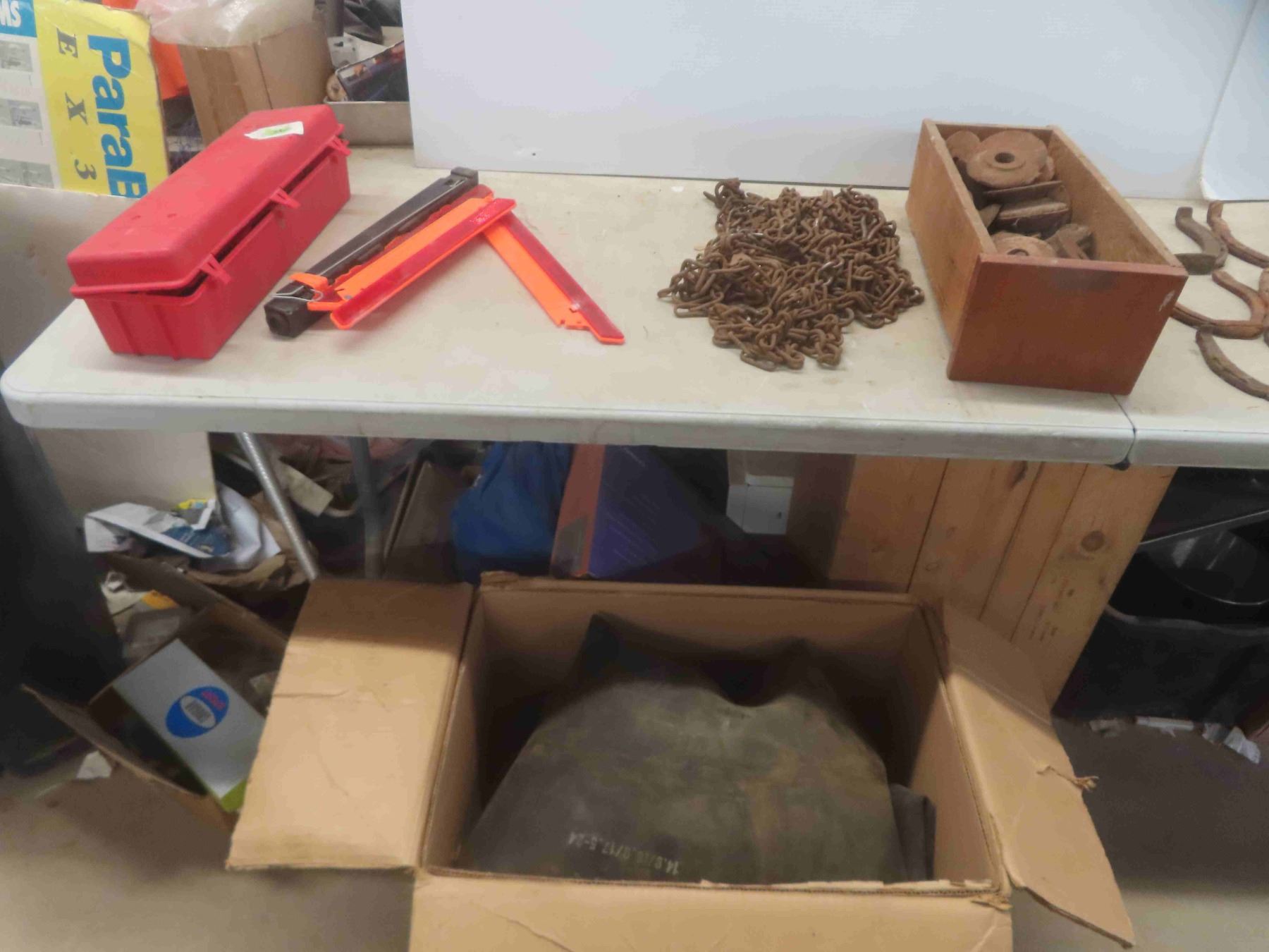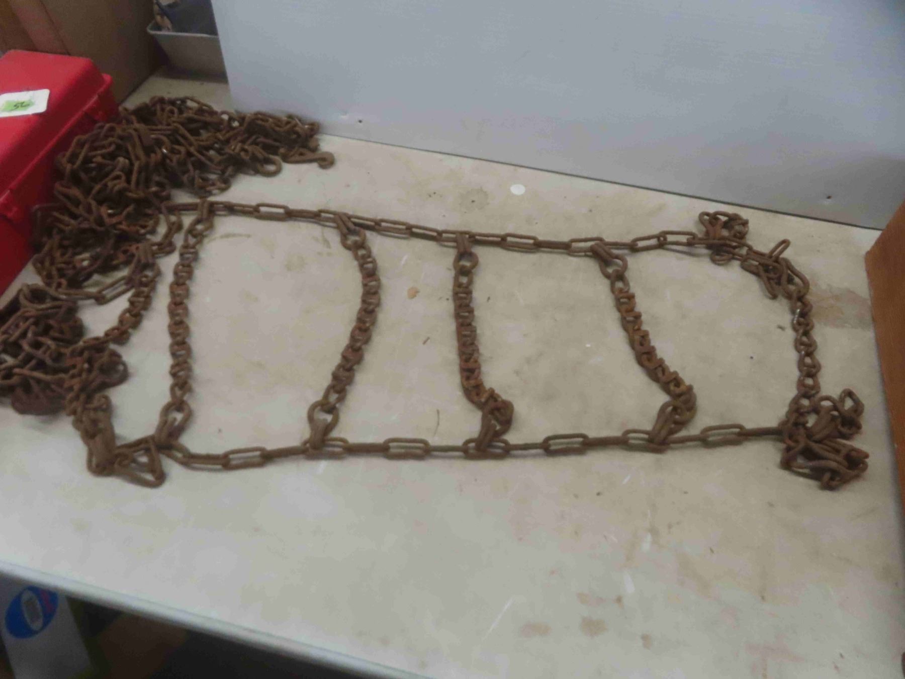 Pair of 6' Tire Chains, New Truck Safety Markers, Tractor Tire Tube 14.9/16.9/17.5-24, 50 Round Cast Washers from Early Original Winnipeg Beach Dance Pavillion