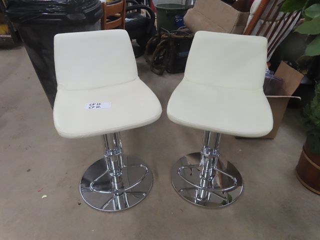 Pair of Chrome Bar Stools with White Upholstered Seats