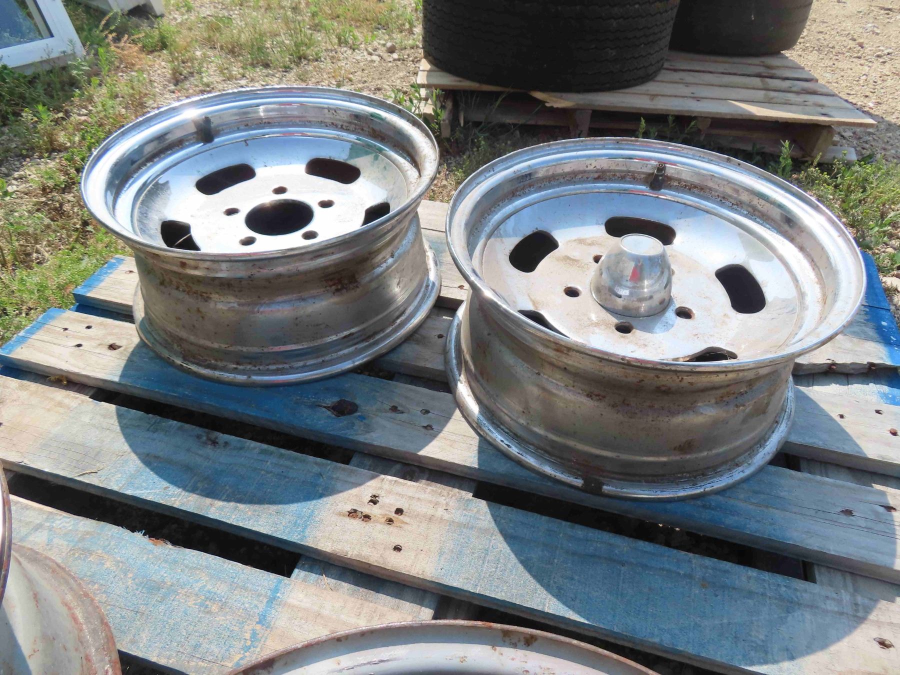 Pair of Chrome Slotted 5 Bolt Mags 15"