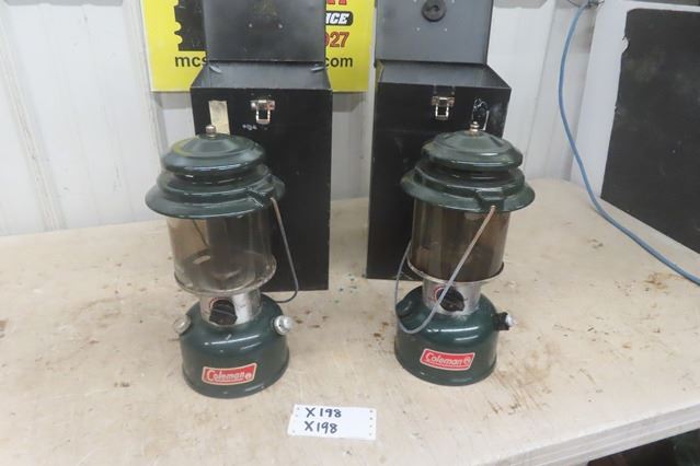 Pair of Coleman Model 290A Oil Lanterns with Metal Cases
