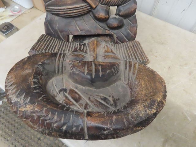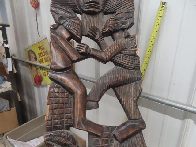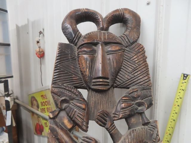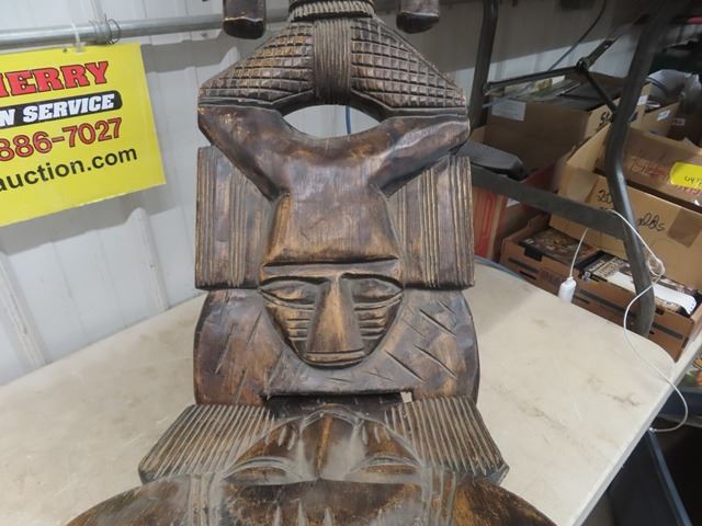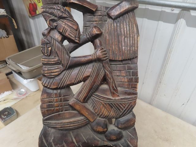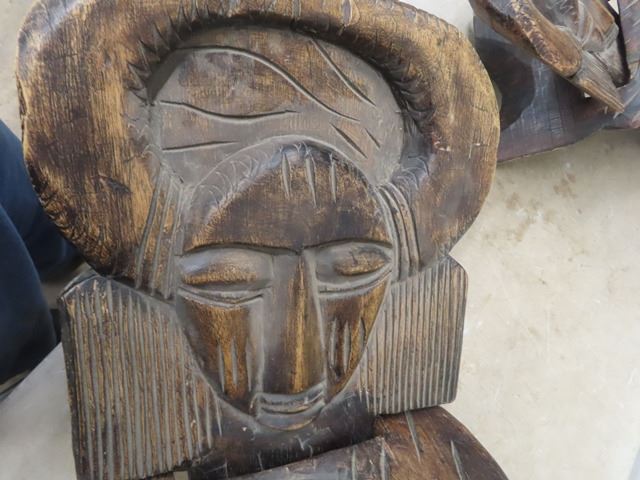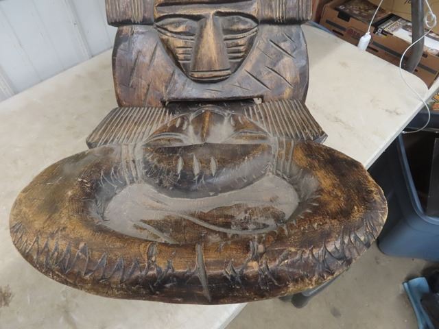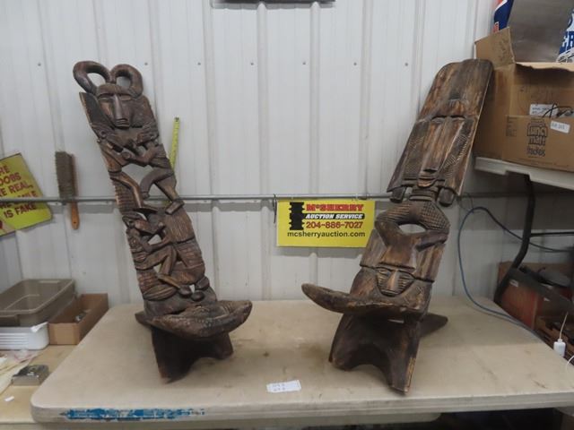 Pair of Funky Tribal Carved Wooden Chairs 50+ 55" Backs - Very Ornate + Detailed