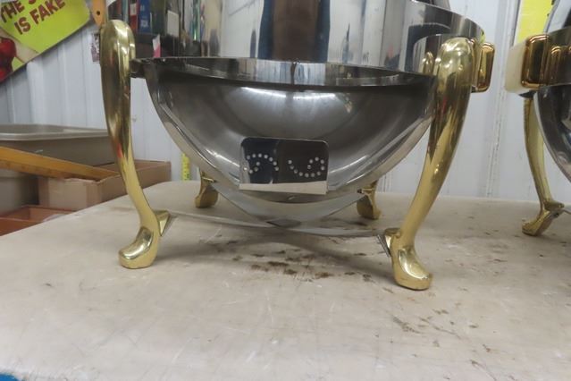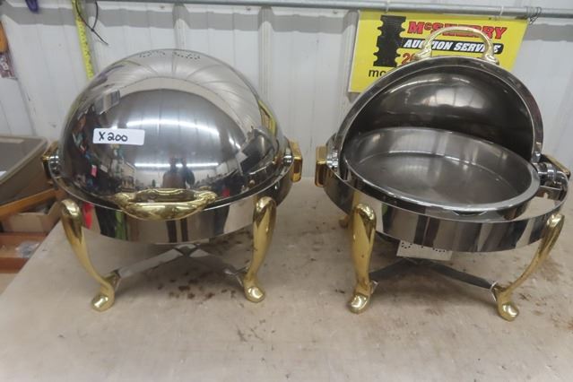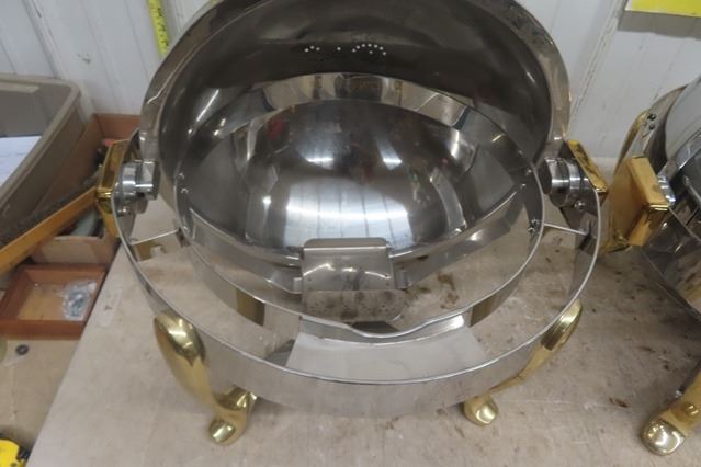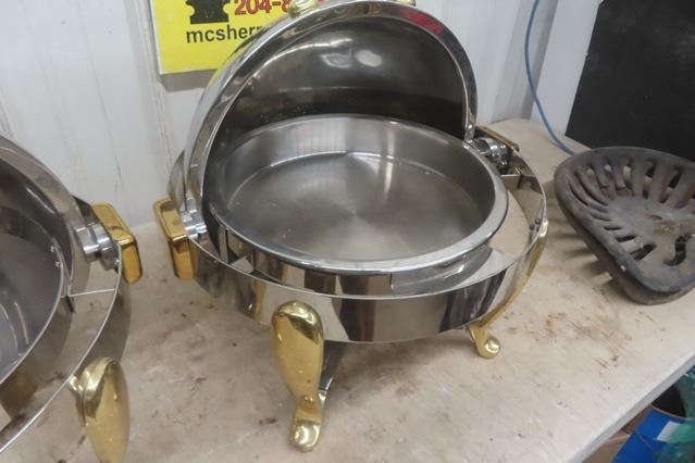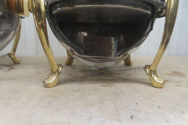 Pair of Heavy Duty Round 'Orbit'  Buffet Servers 20" Wide 20" Tall - 1 is Missing Pan