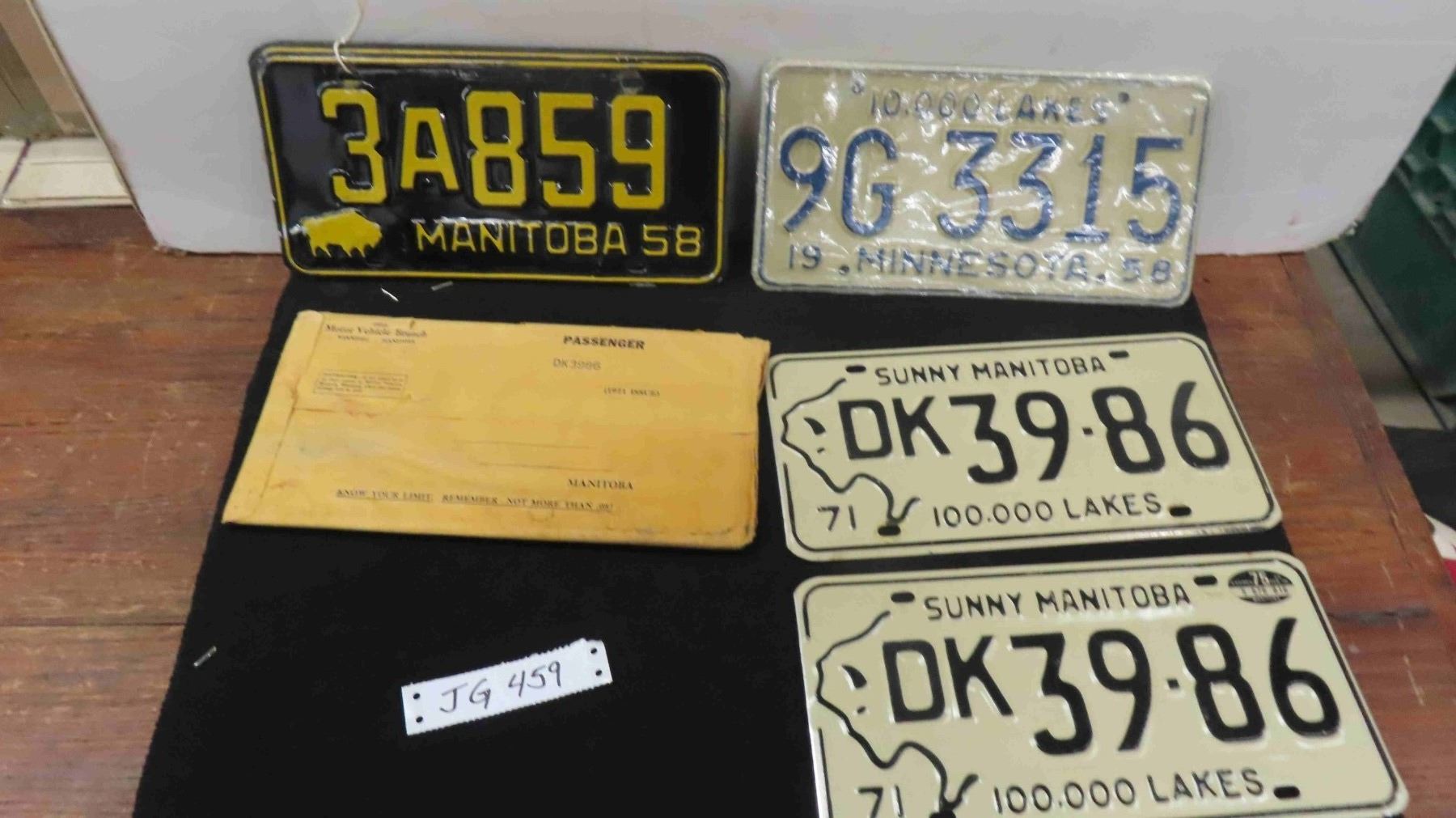 Pair of Manitoba 1958 License Plates, 1958 Minnesota Plate, Pair of 1971 Manitoba