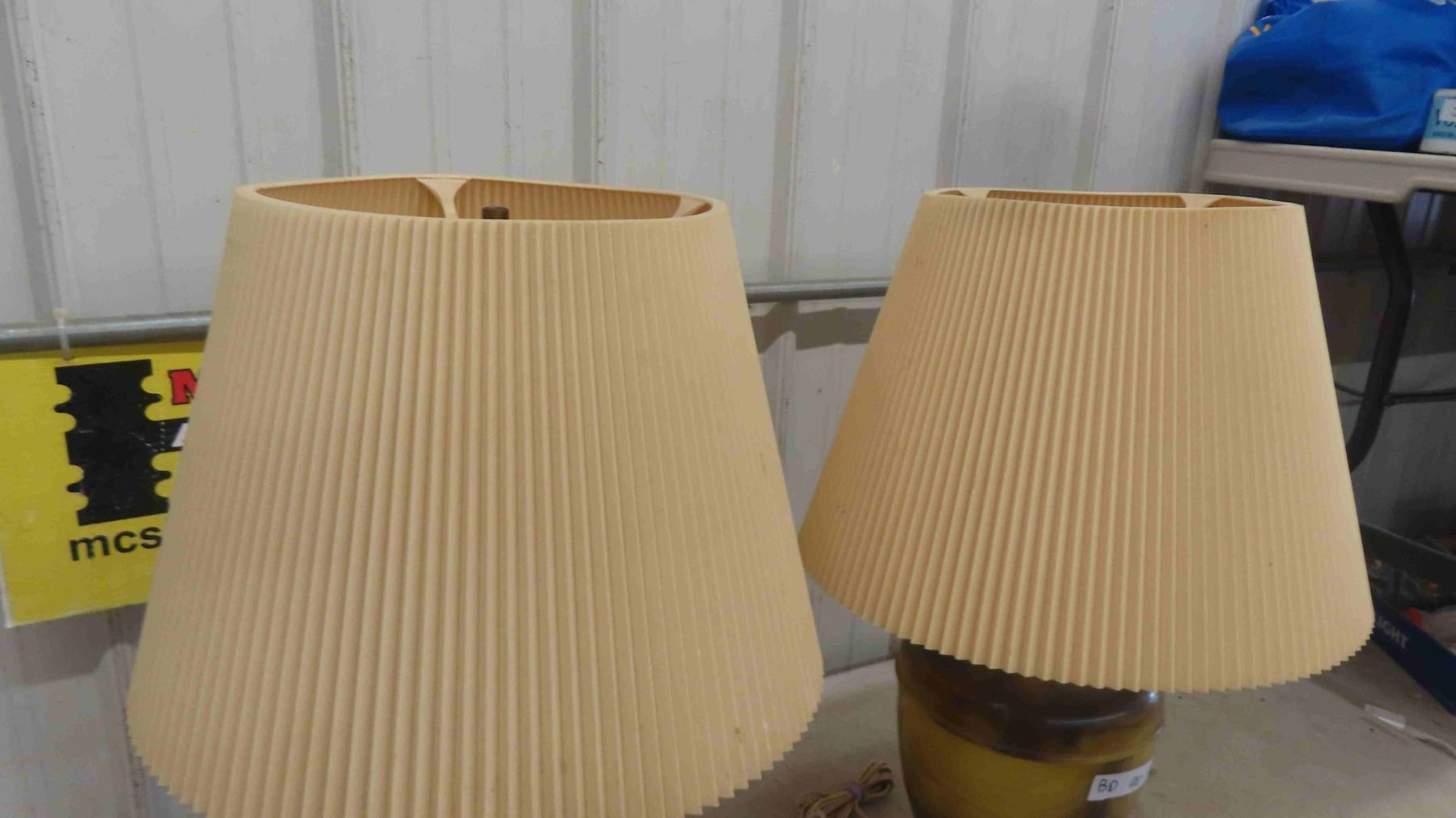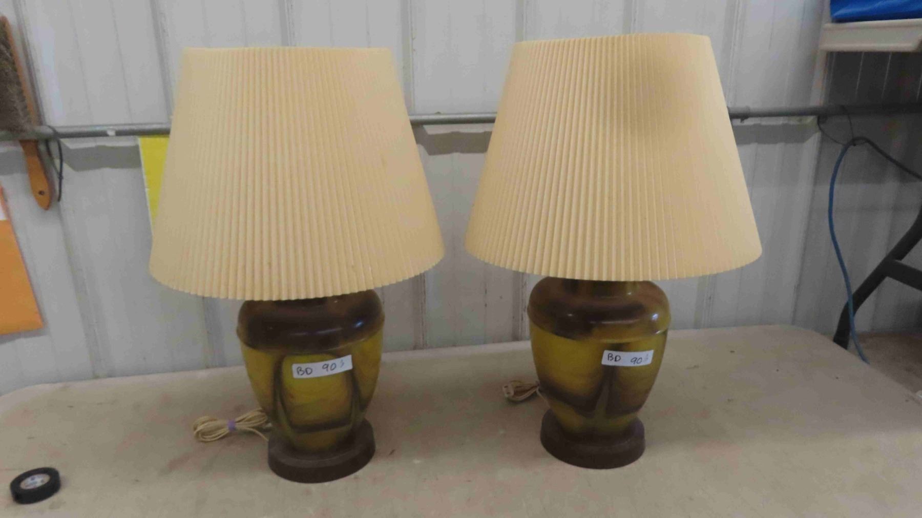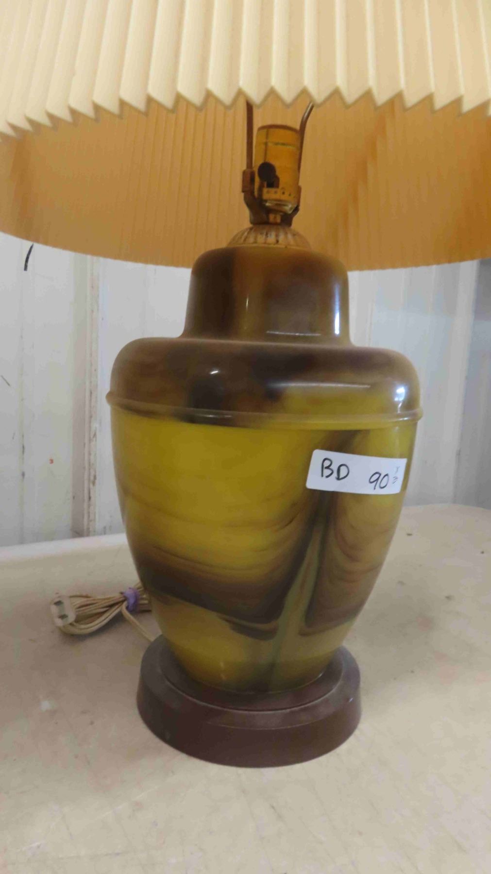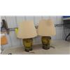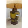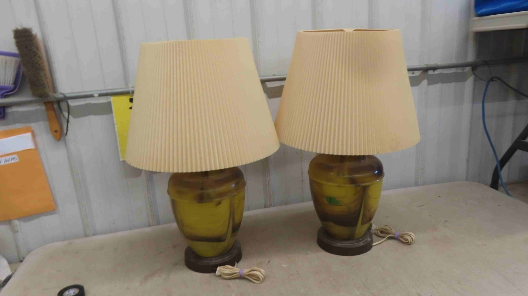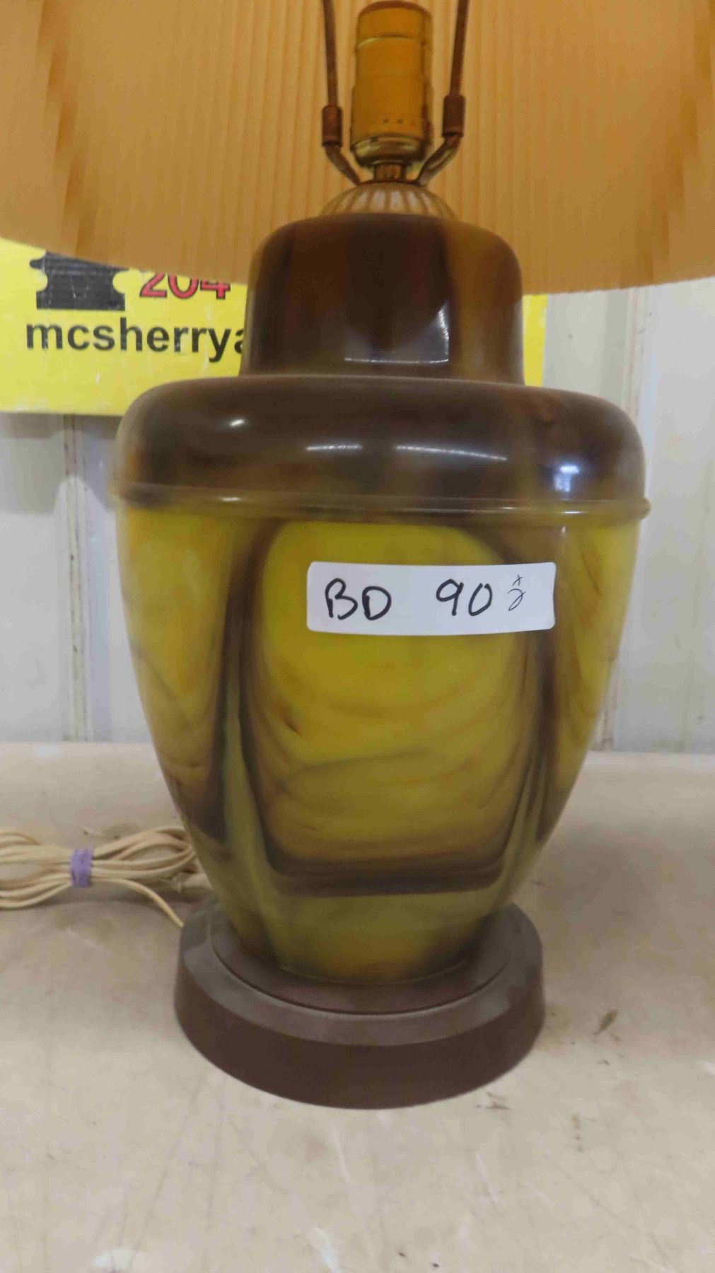 Pair of Mid Century Modern Lamps 27'' Tall with Yellow and Brown Acrylic Swirl Design and Original Plastic Shades . Made by Gilbert Softlite in Montreal Canada -Working Condition