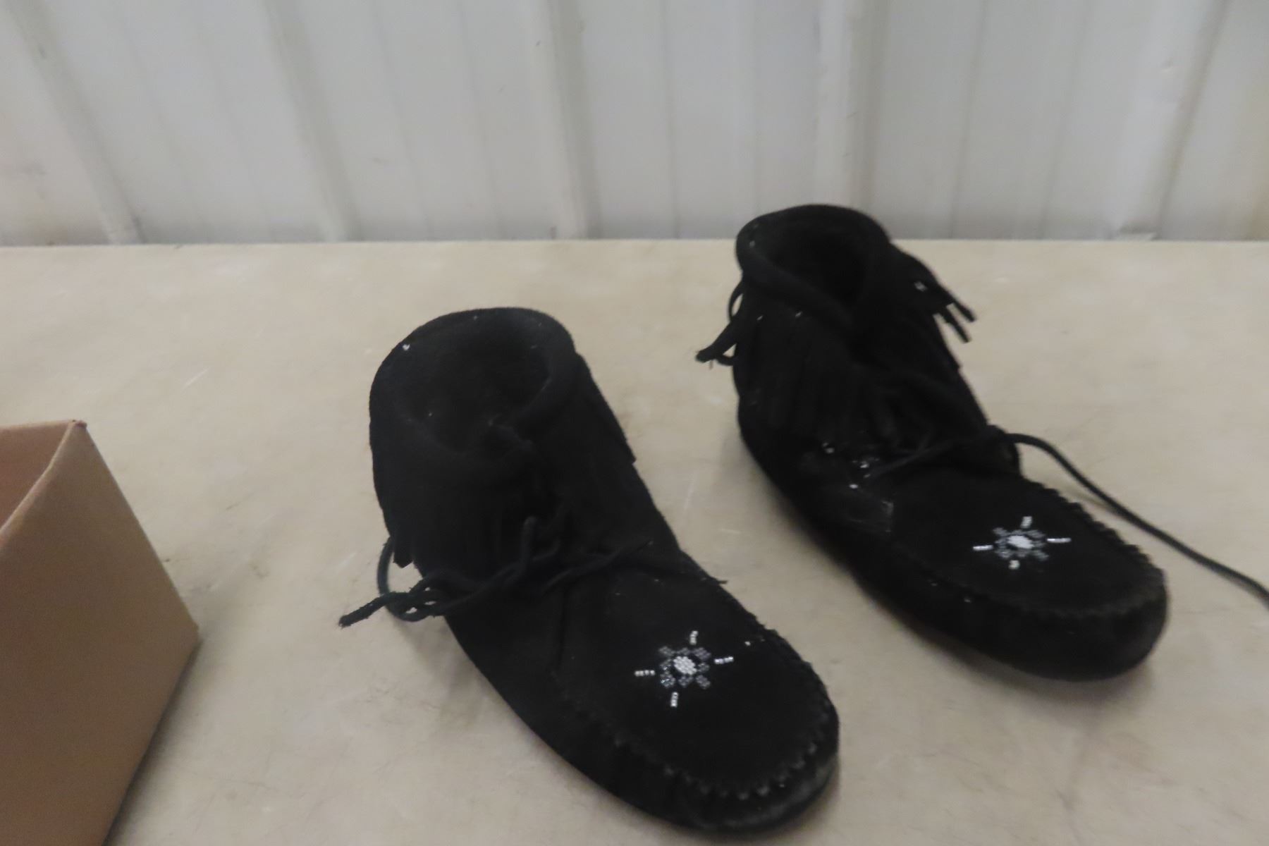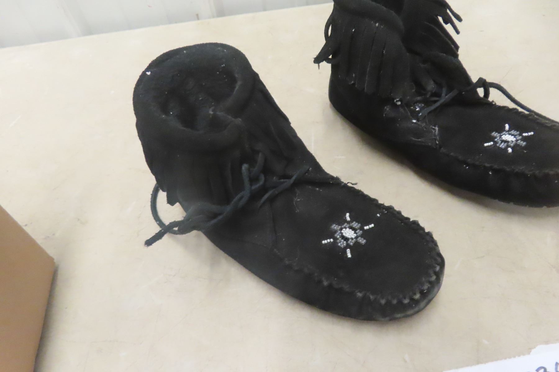 Pair of Moccasins and Wooden Cabinet 67" x 51" x 18"