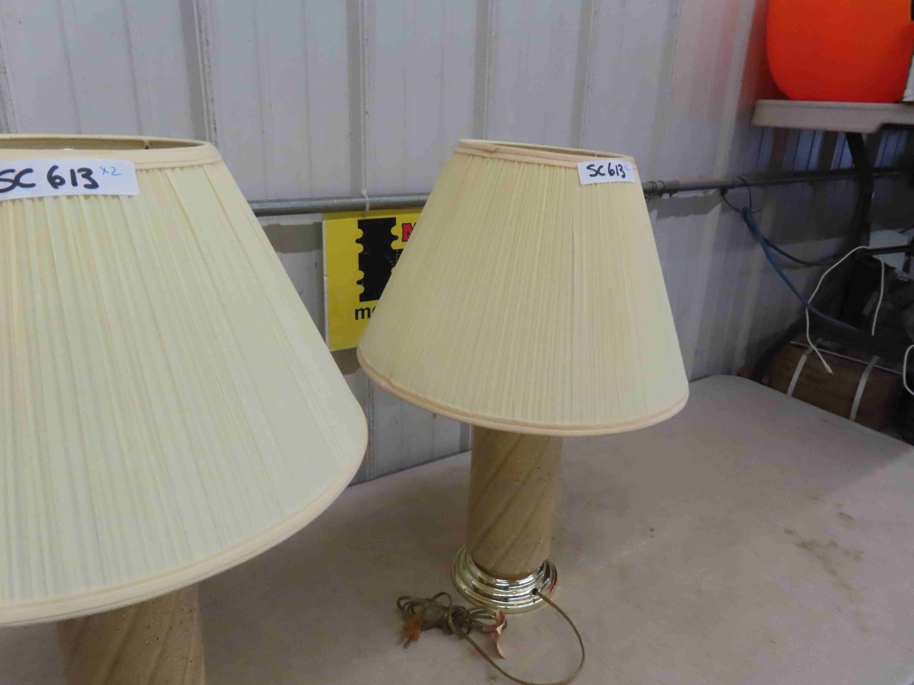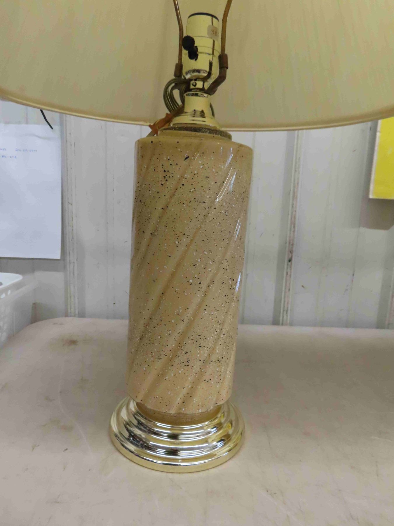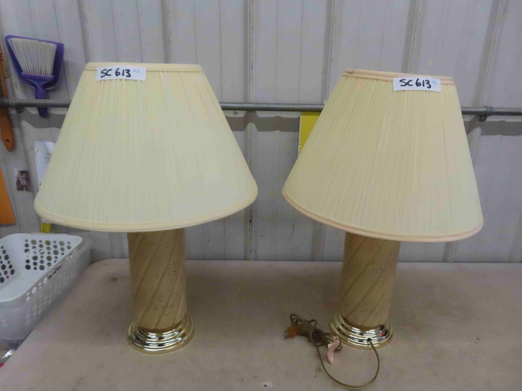 Pair of Table Lamps - Glass with Brass Bottom 25" tall