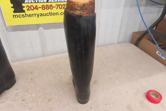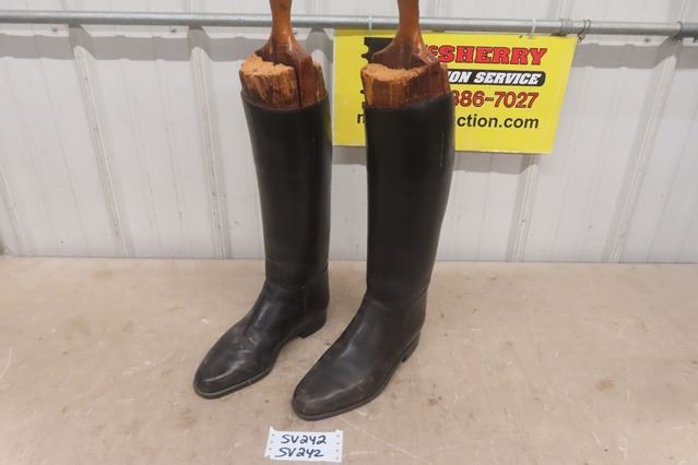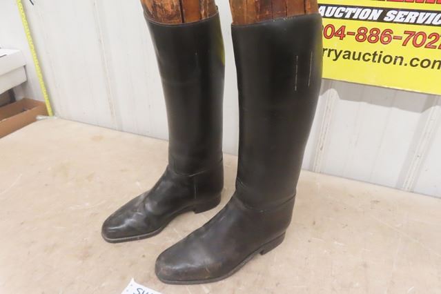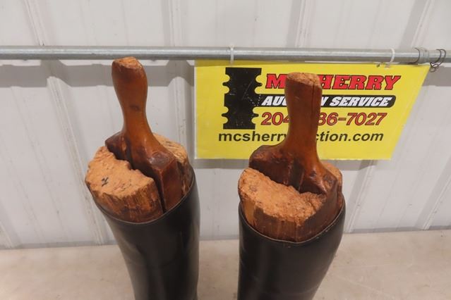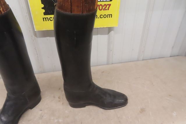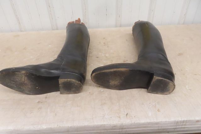 Pair of Vintage Black Leather Boots with Cool Old Stretchers