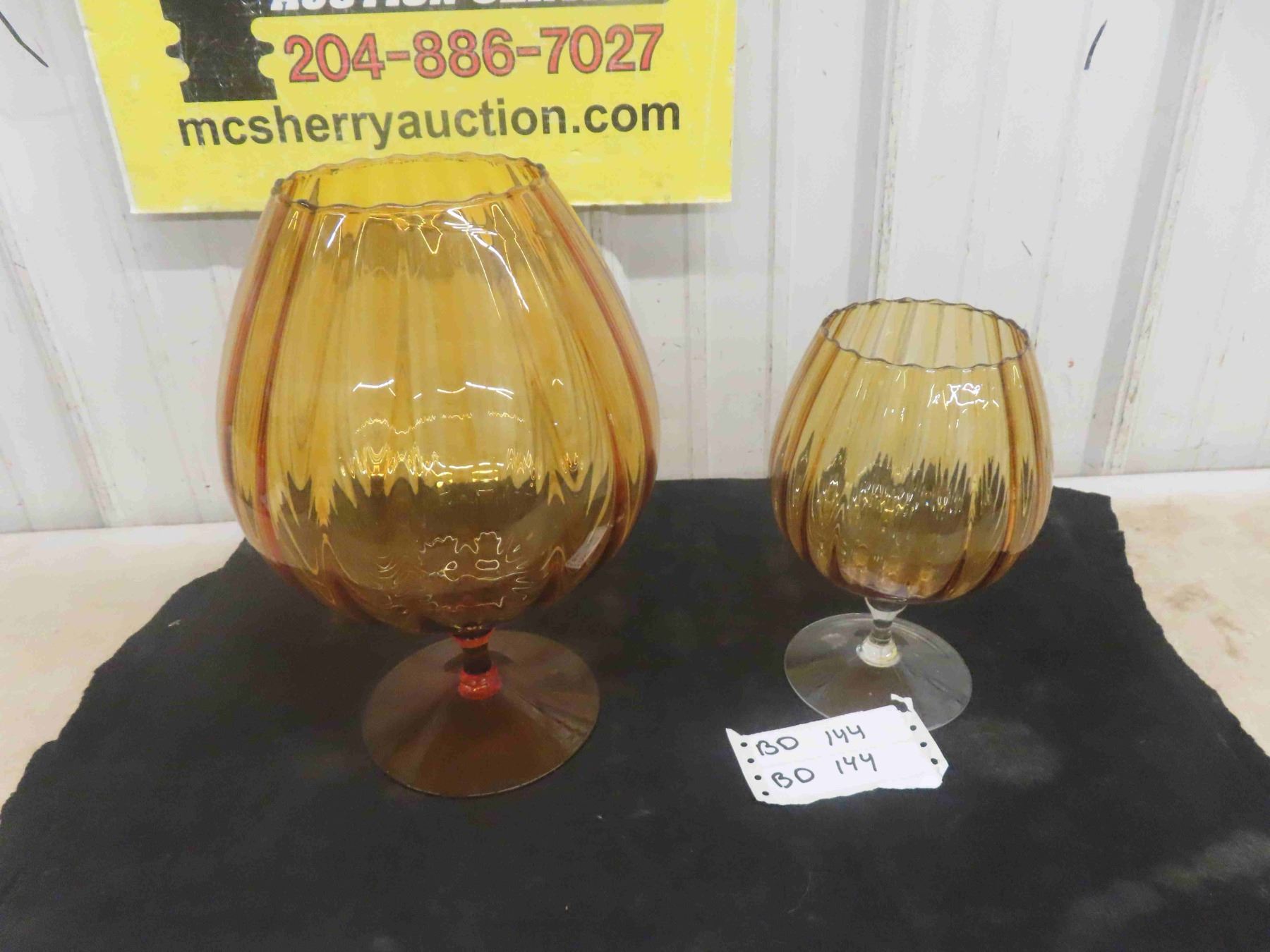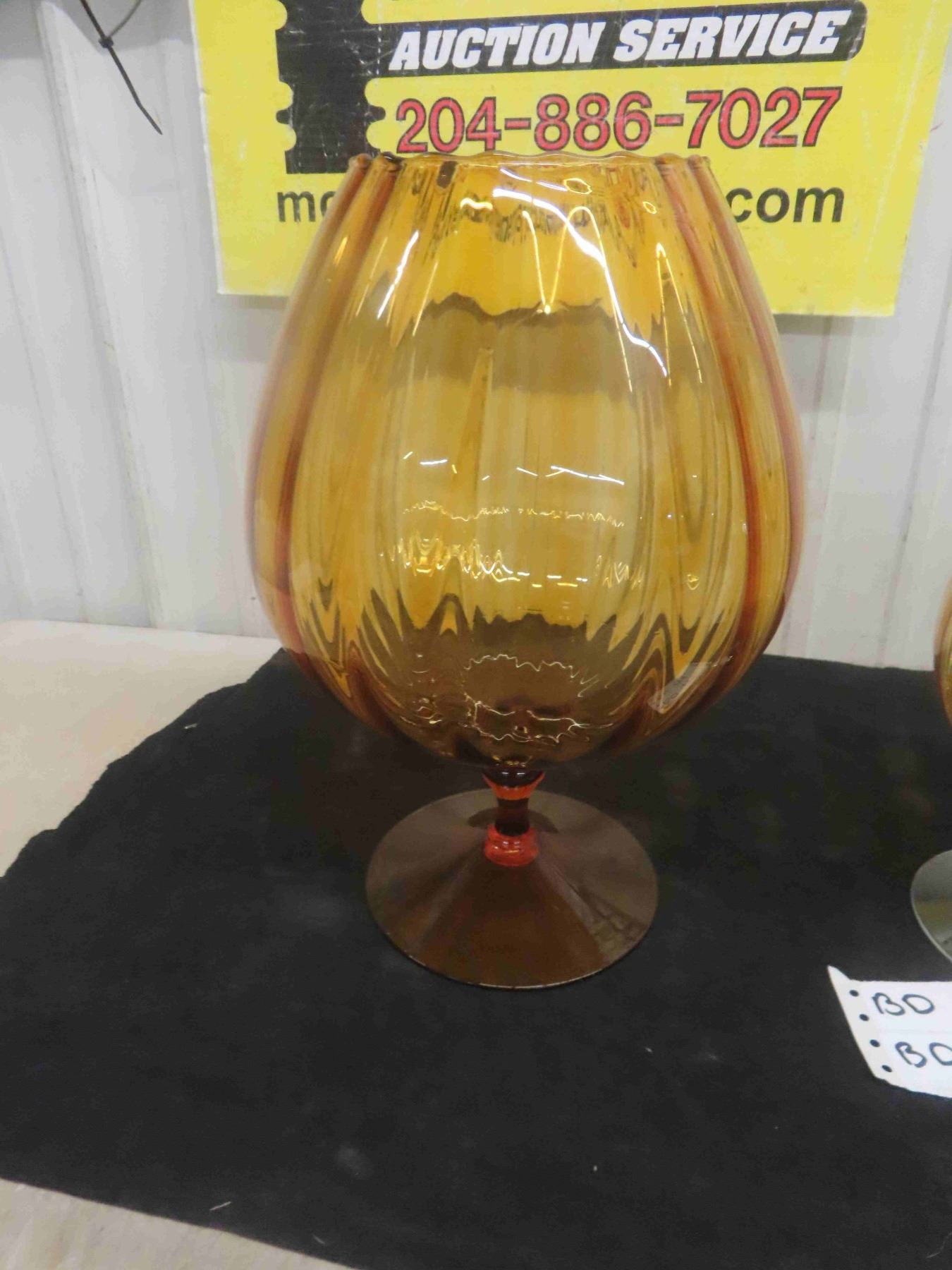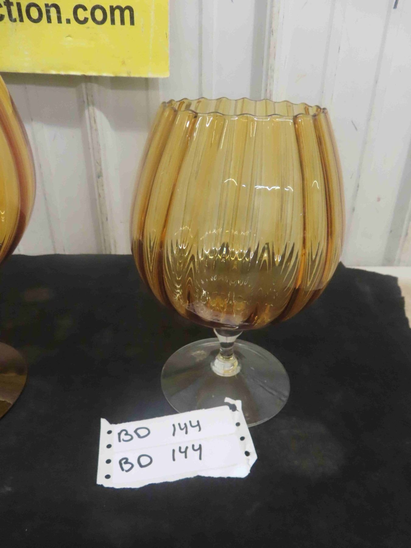 Pair of Vintage Mid Century Italian Gold Art Glass Vase Center Pieces