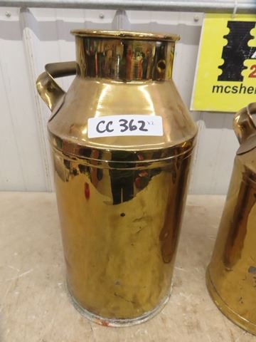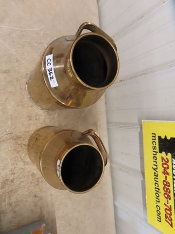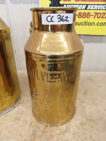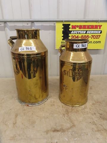 Pair of Vintage Milk/ Cream Cans with Brass Finish - 1 is Peeling - Largest 18.5" tall