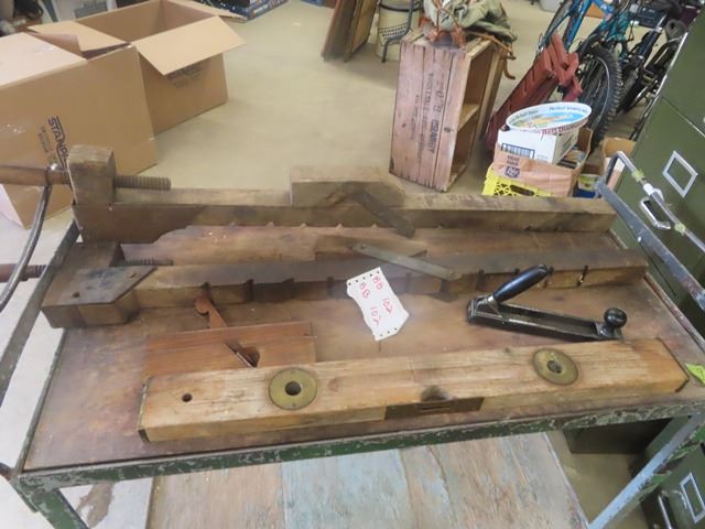 Pair of Wooden Cabinet Makers Clamps from late 1800's "x" & Vintage Level + Wood Planer