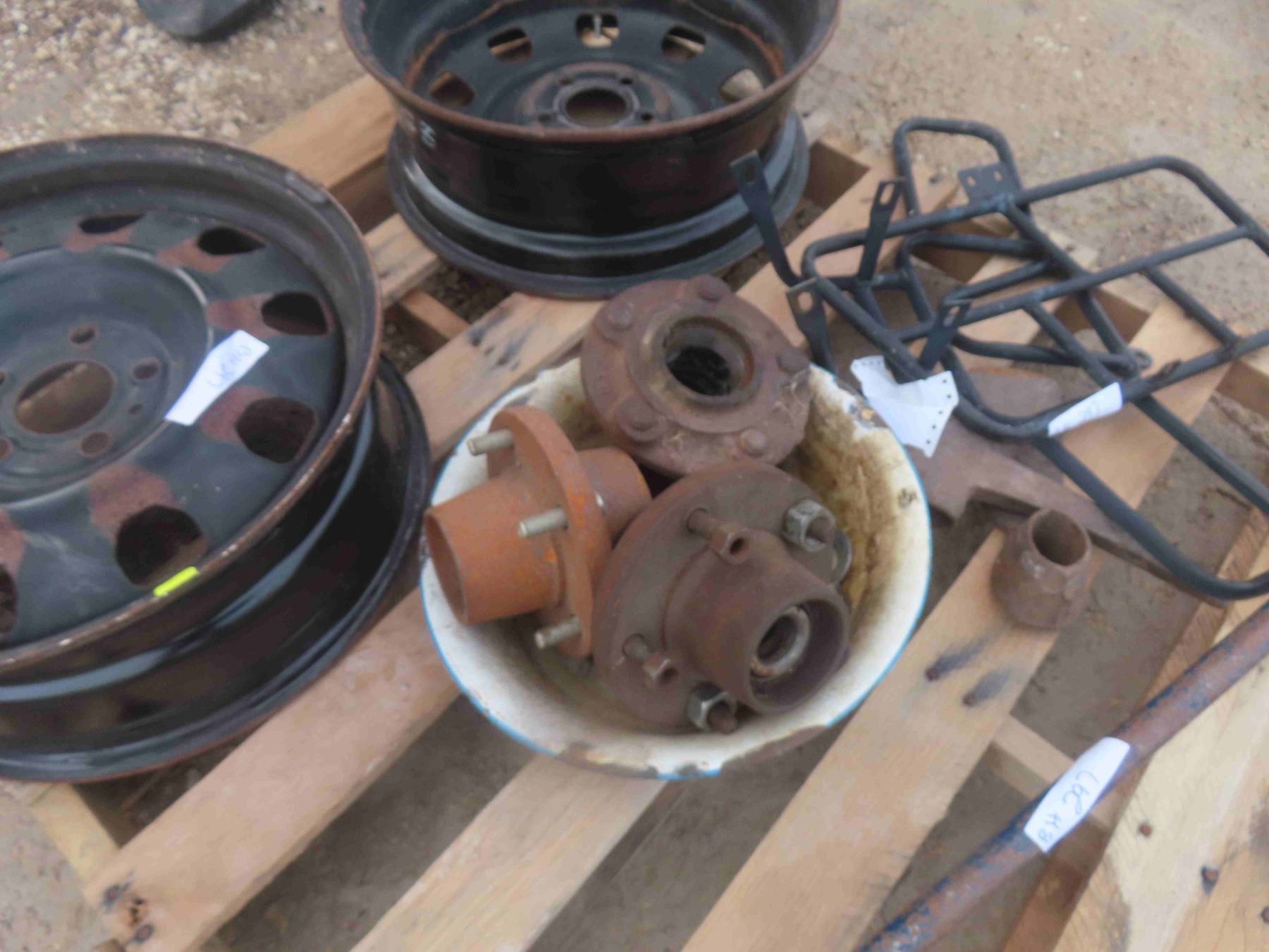 Pallet Lot: 2 Rims Off Dodge ,Hubs ,2 Quad Rails/Rack