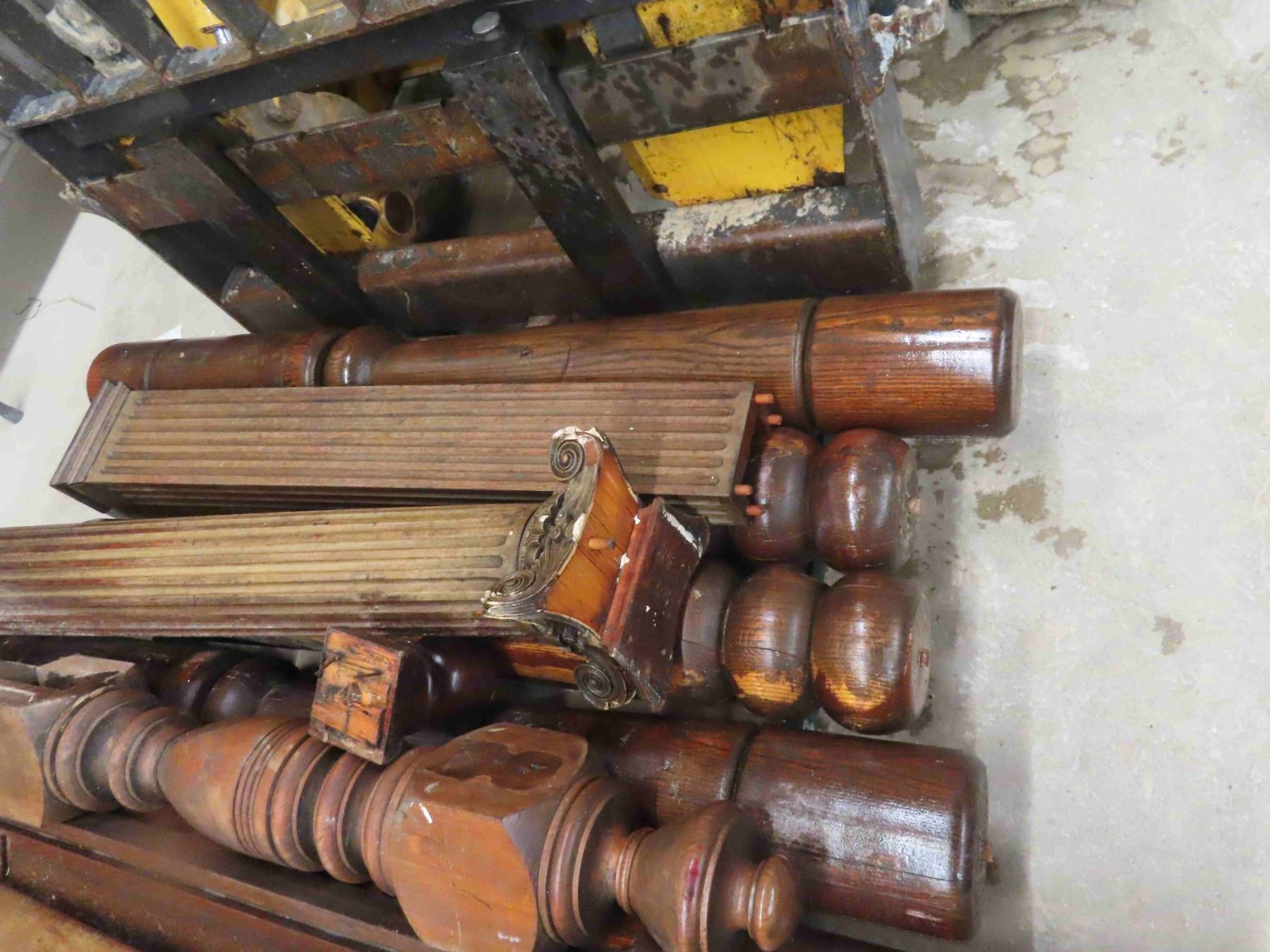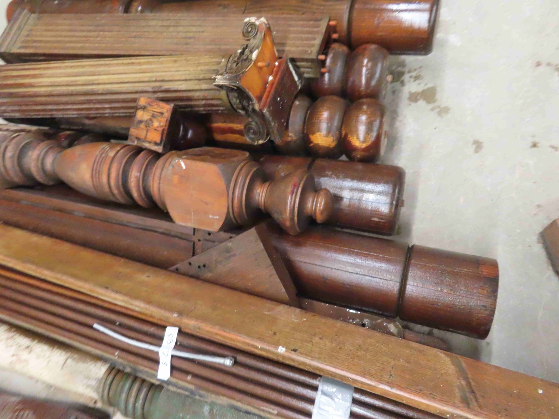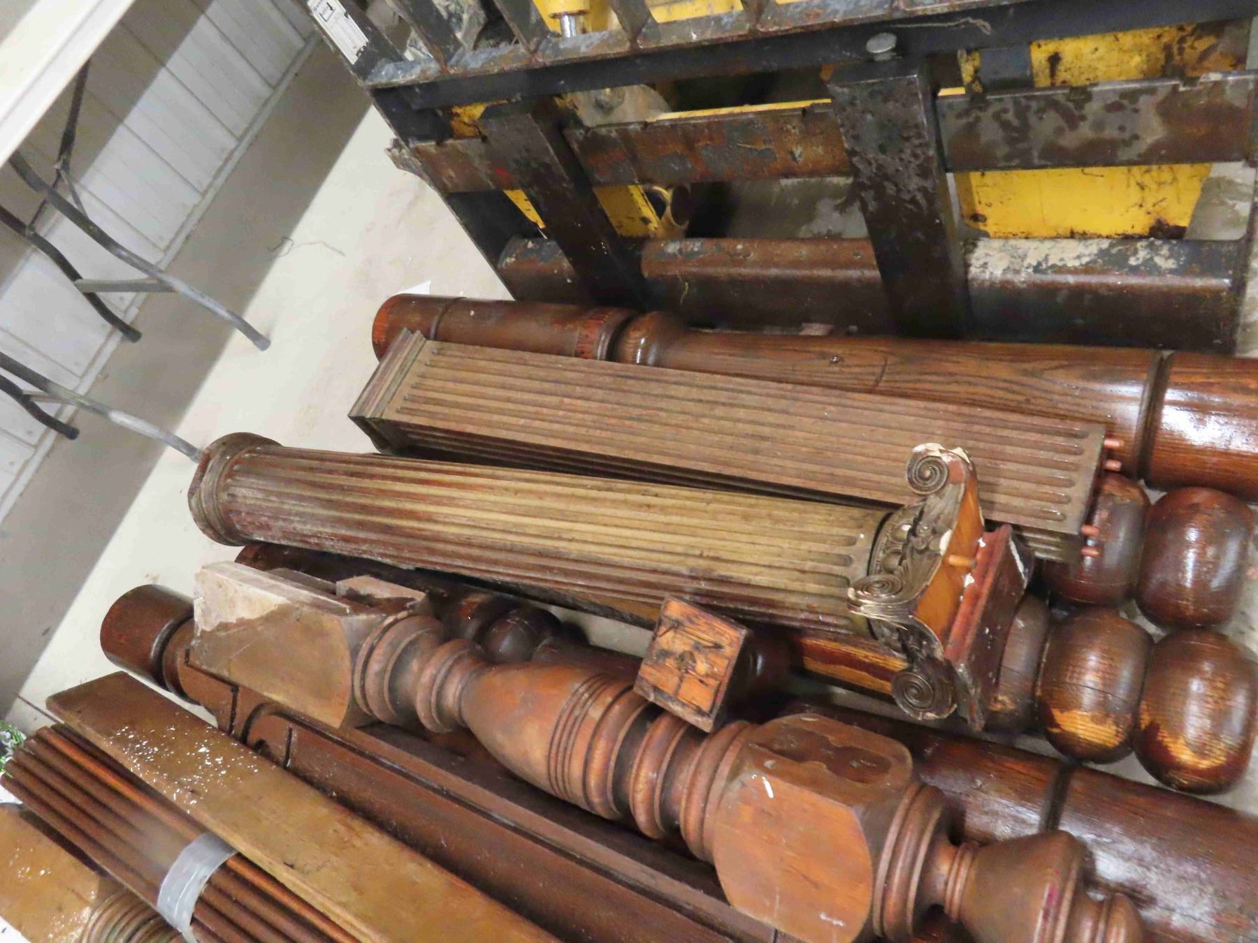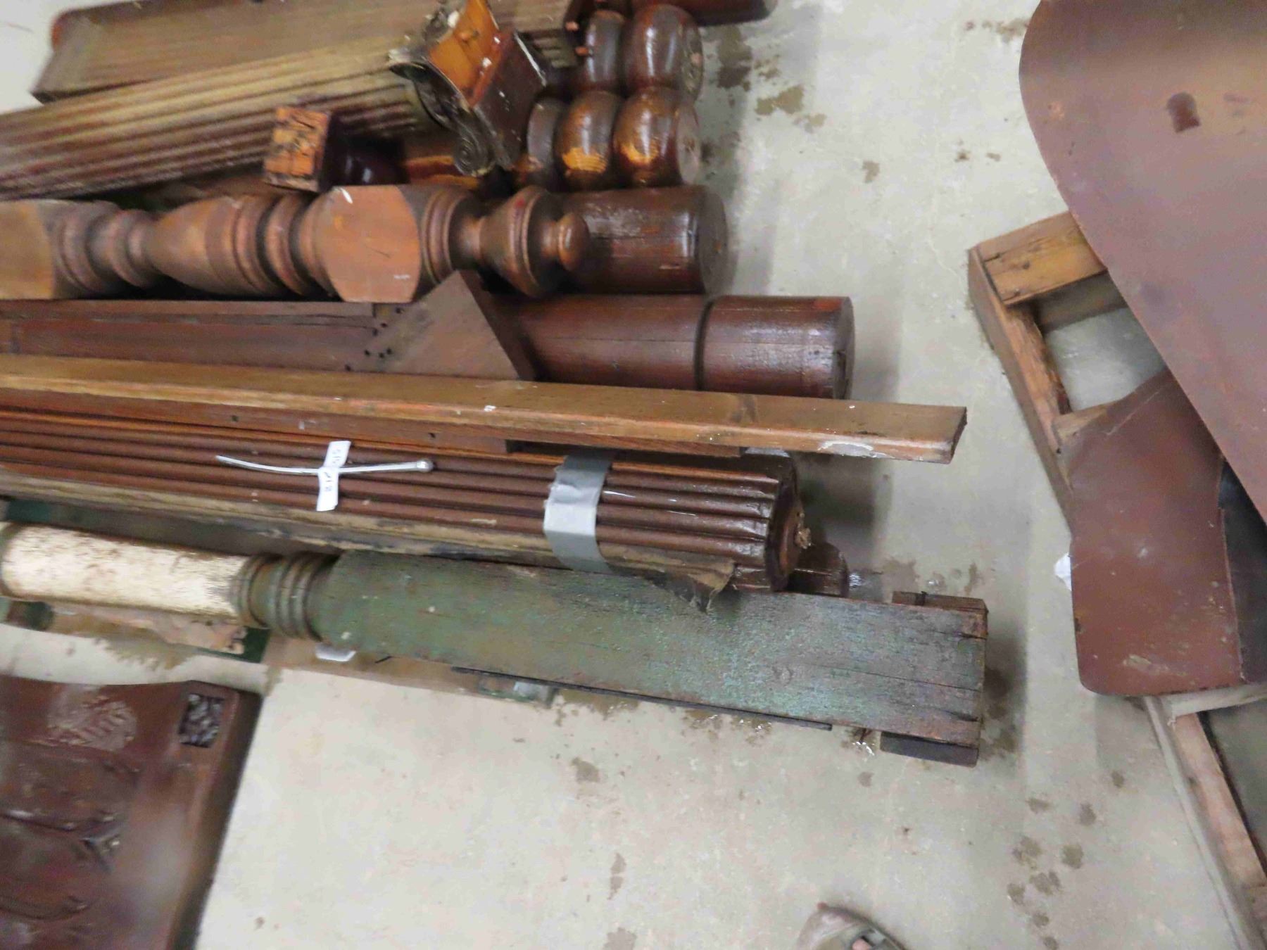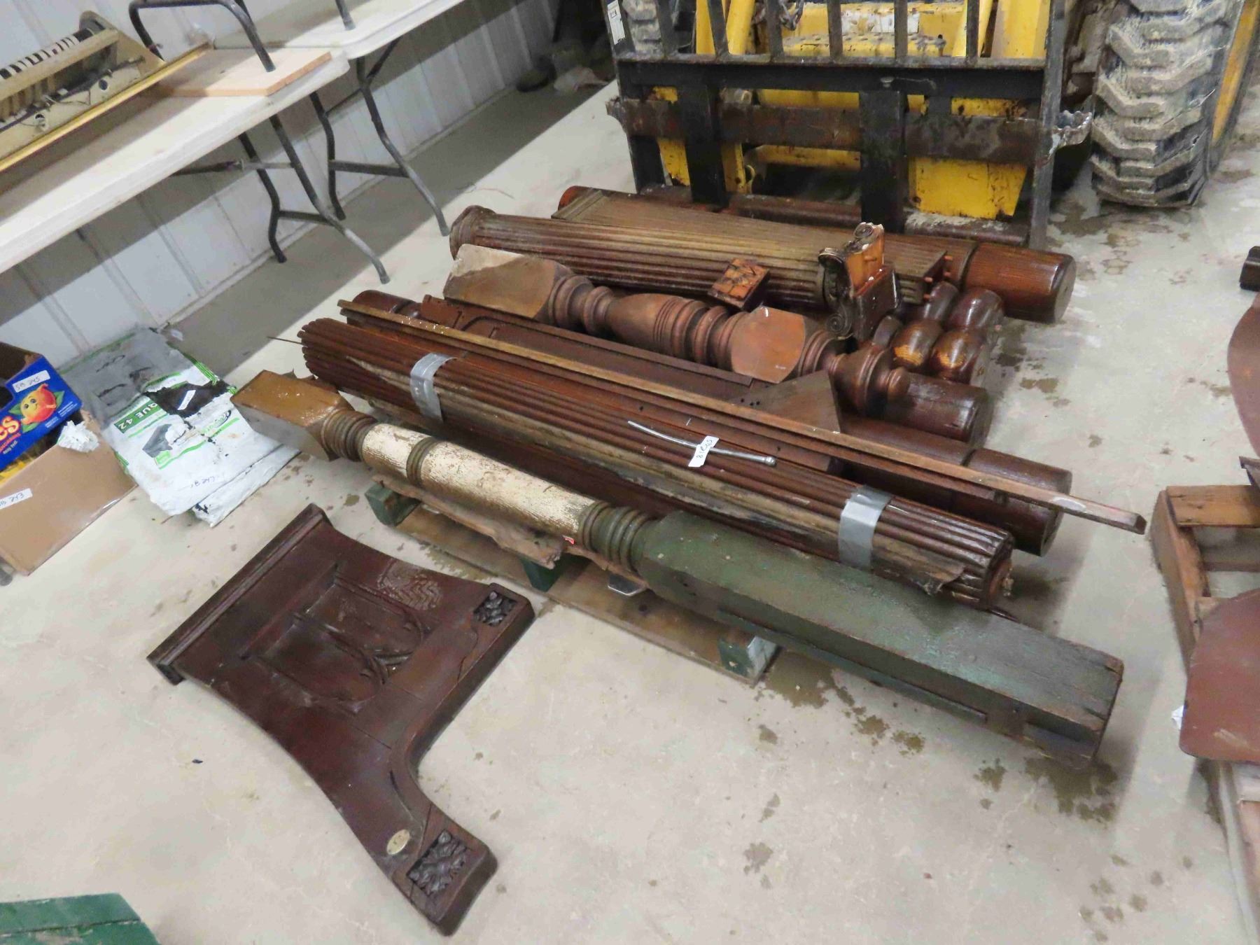 Pallet Lot: Antique Wood Pillers, Roll Top for Desk, Church Pew End, Stair Bannister
