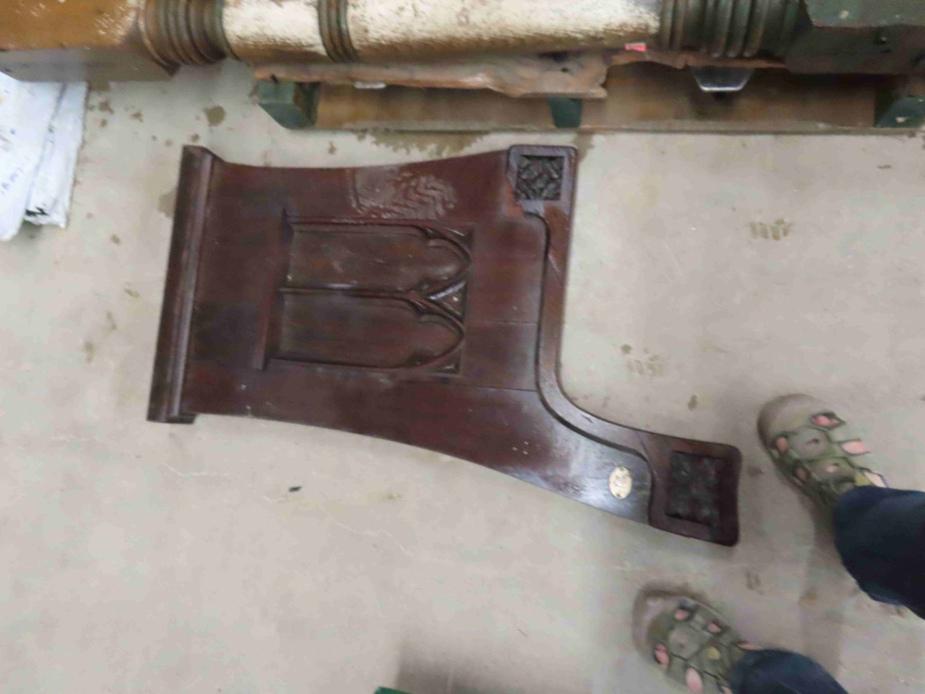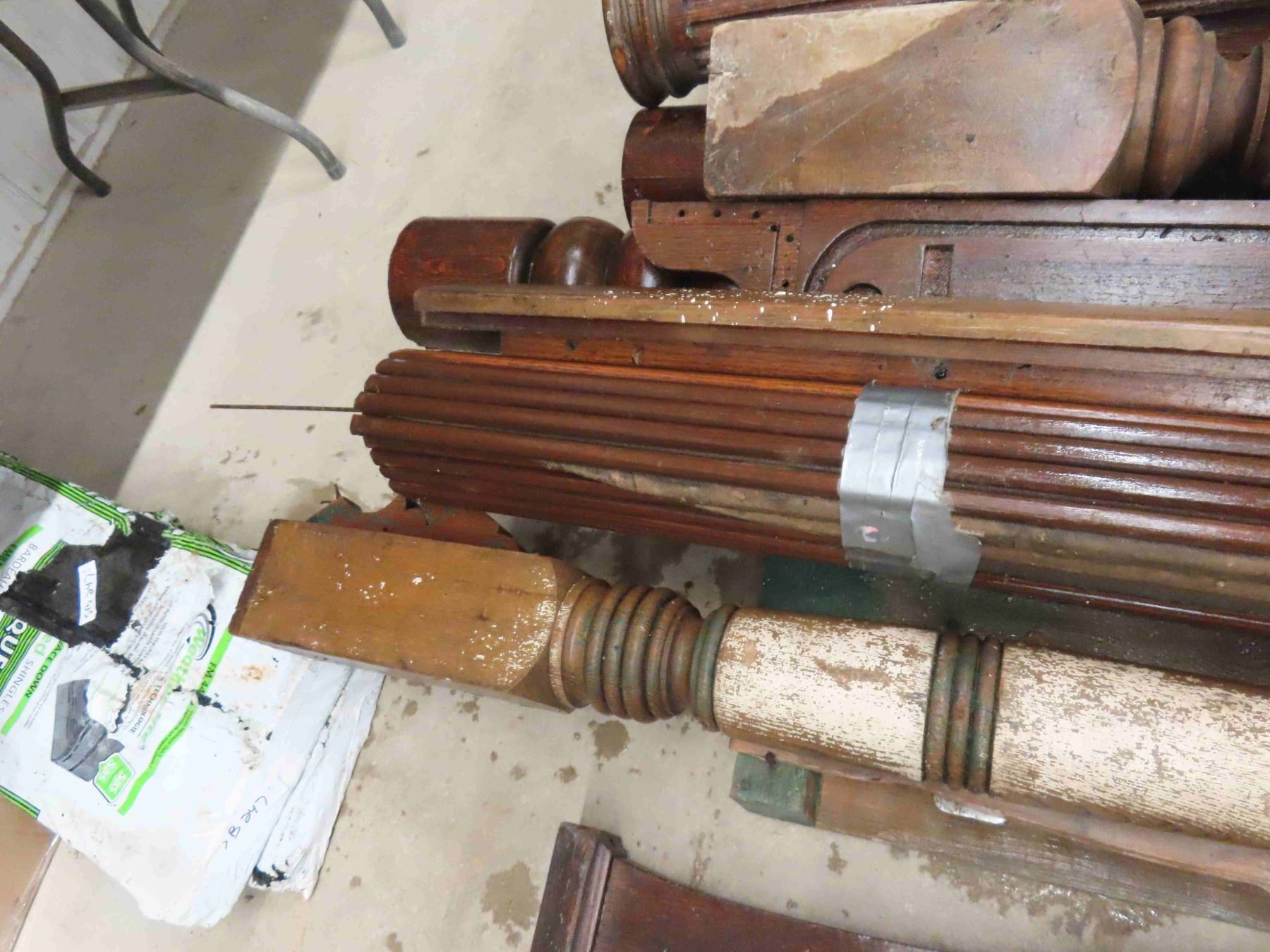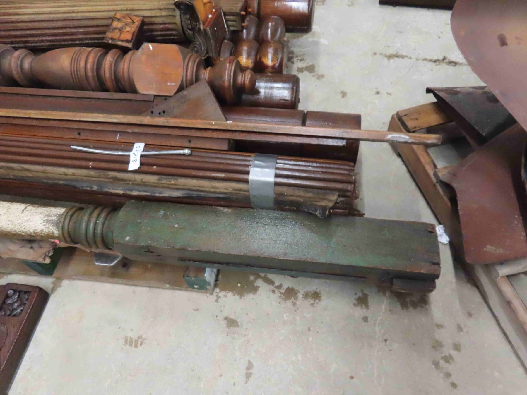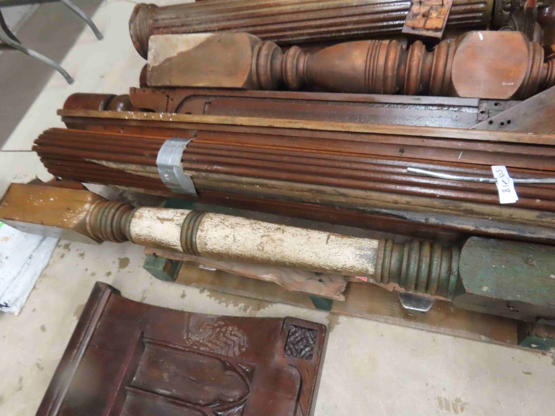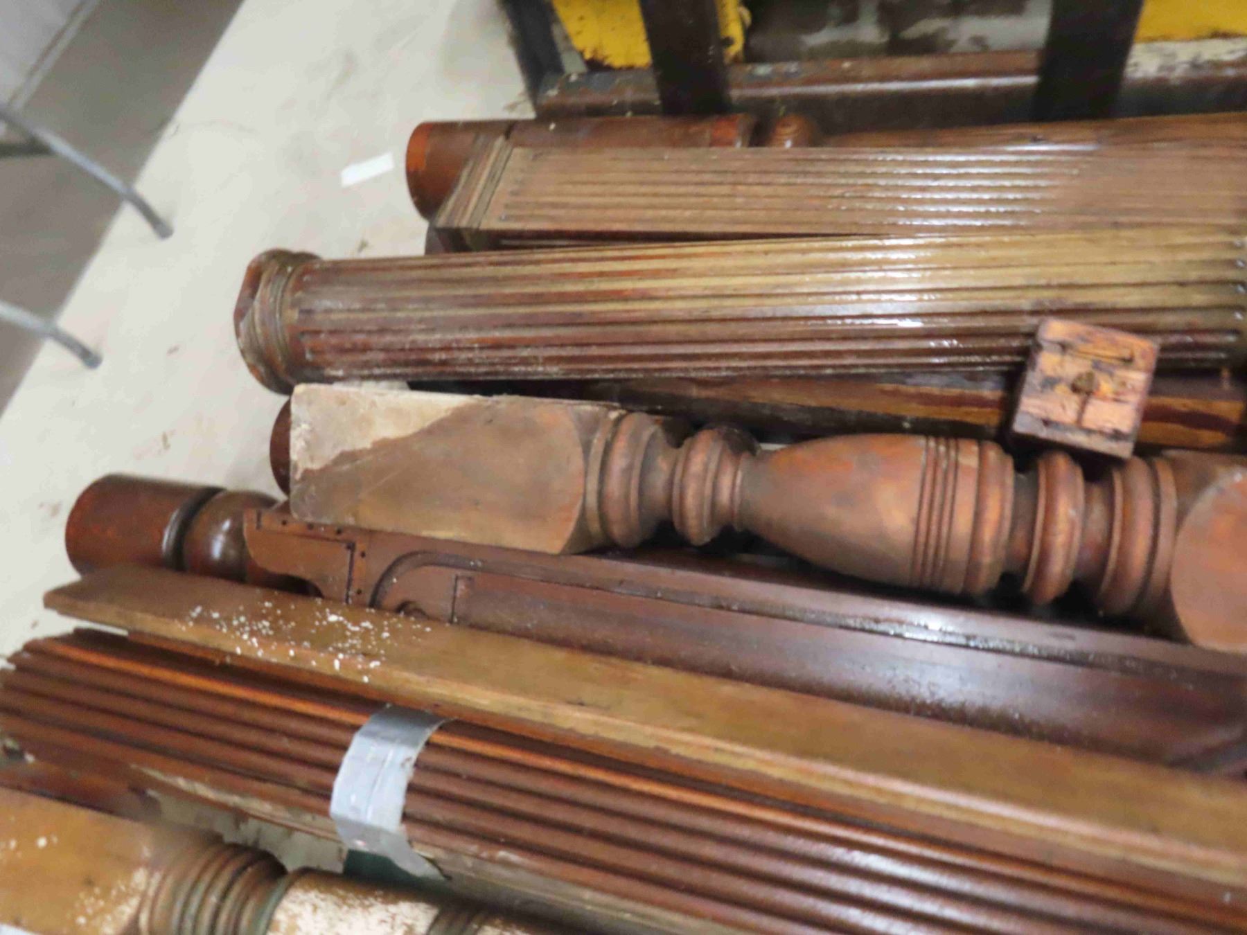 Pallet Lot: Antique Wood Pillers, Roll Top for Desk, Church Pew End, Stair Bannister