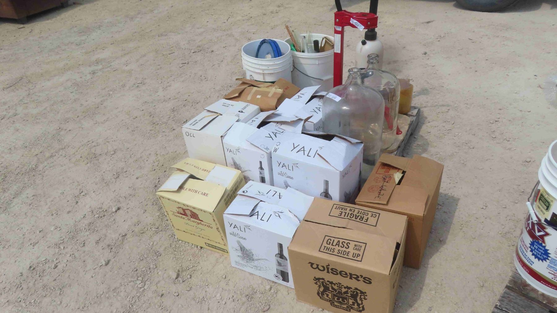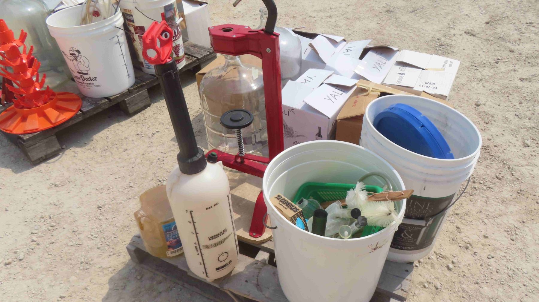 Pallet Lot : Wine Corker , Wine Making Supplies & 9 Boxes of Bottles