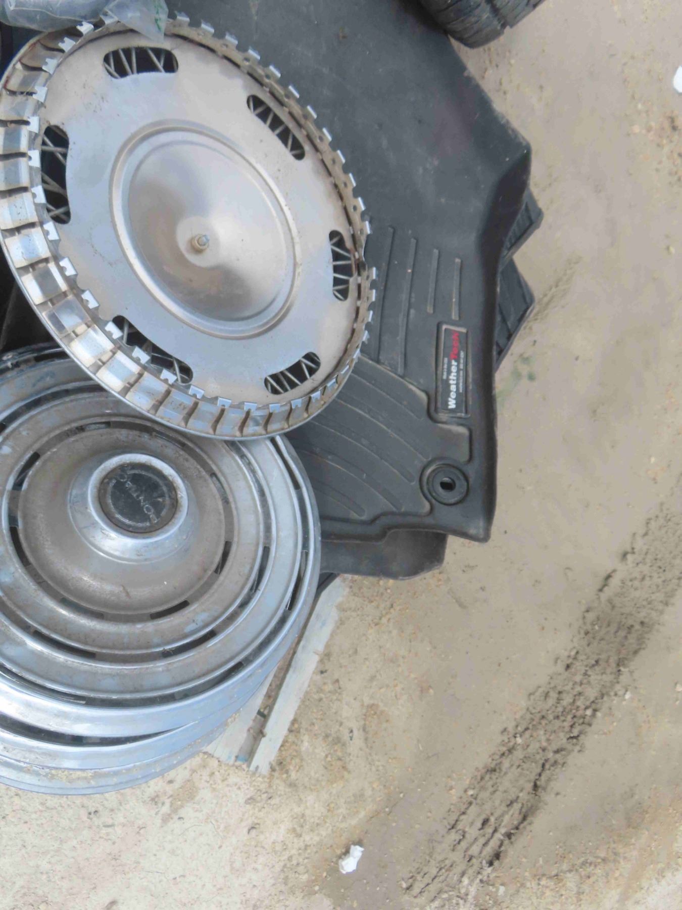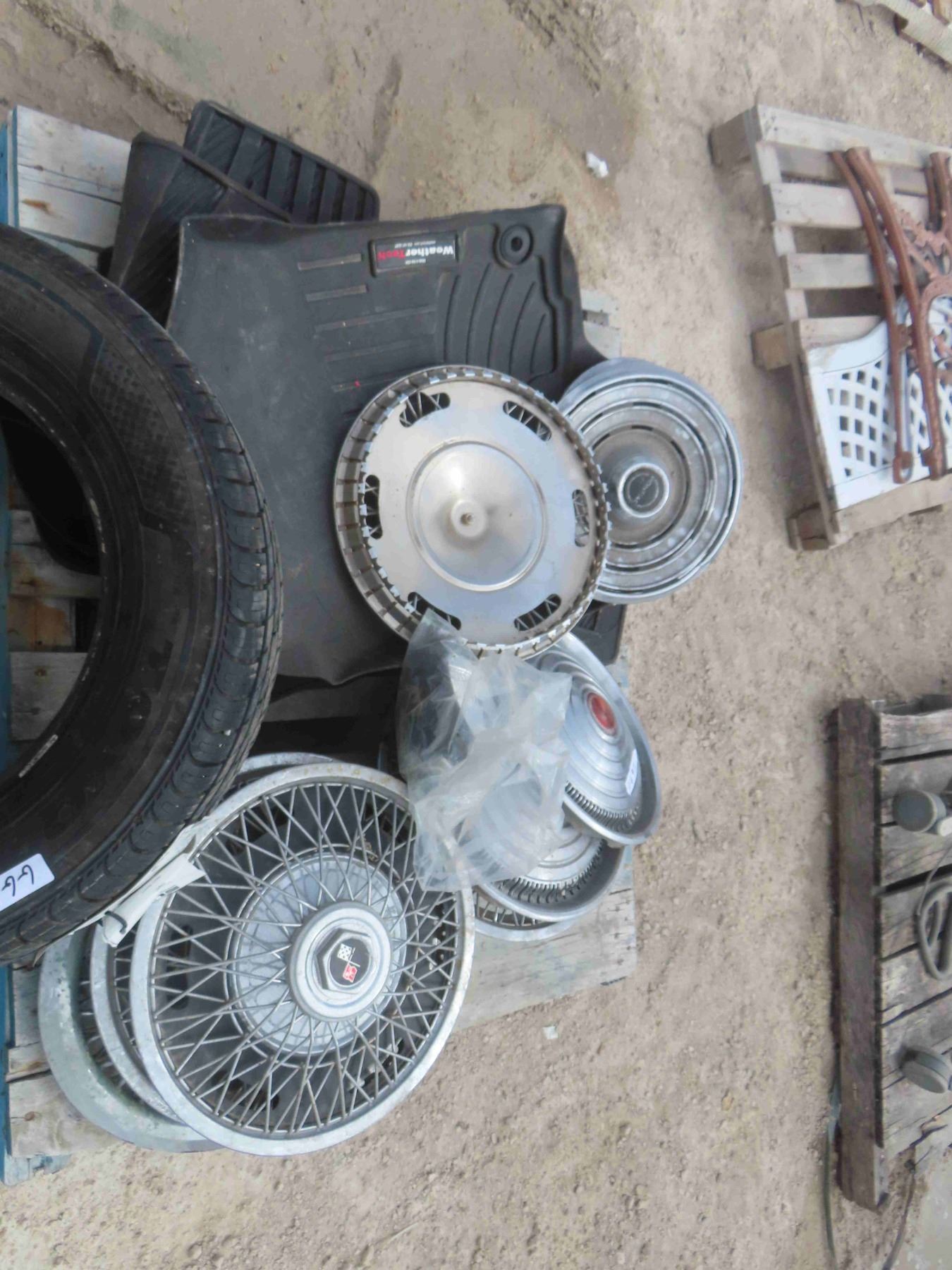 Pallet Lot of Automotive Related: Weather Tech Mats, 13 Hubcaps, 1 Toyo Tire 2360/60/R16