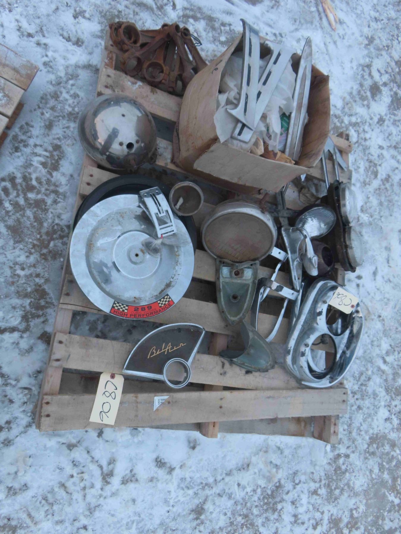 Pallet Lot of Misc. Vintage Auto Parts ; Bel-Air, Lights, Chrome, etc.…