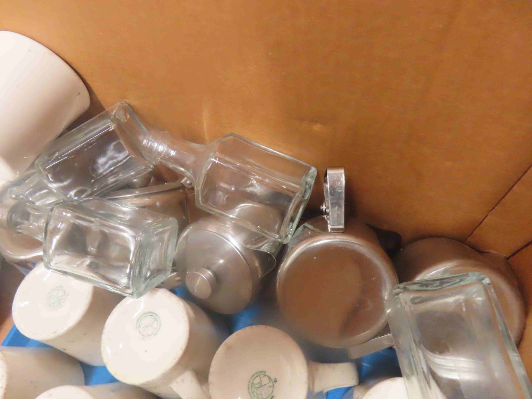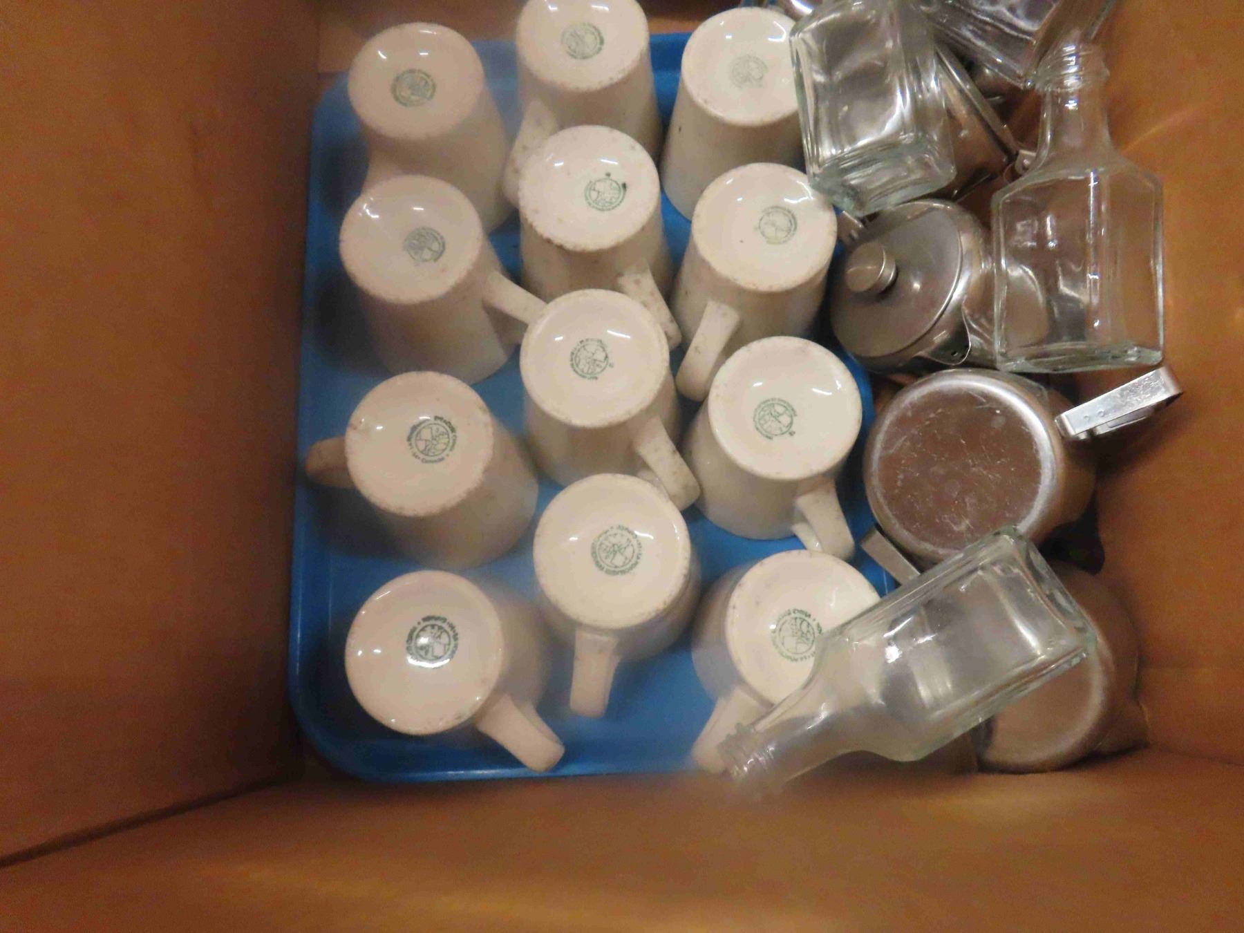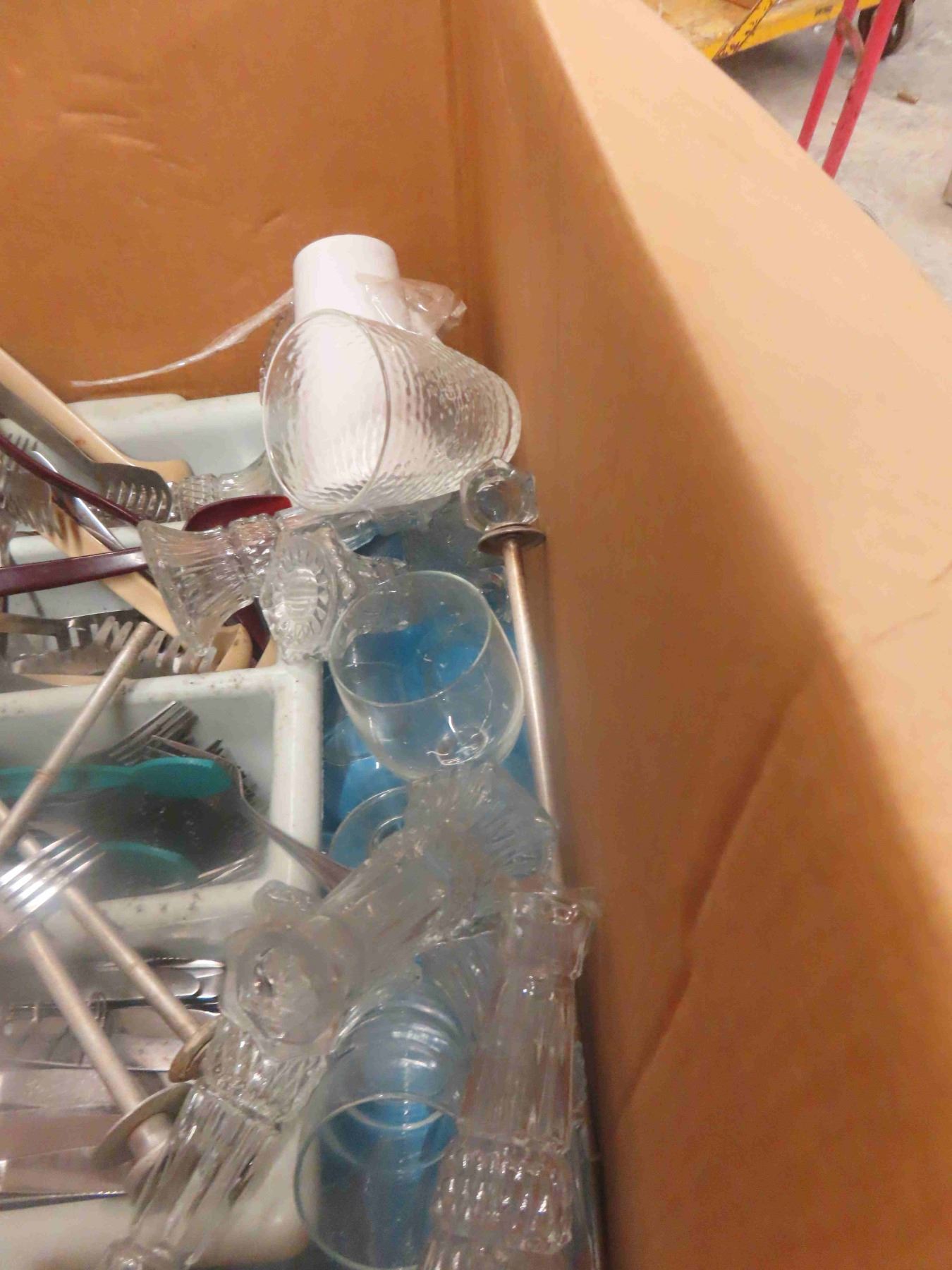 Pallet Lot of Restaurant Dishes, Cups, Trays, Pitchers, Cutlery, Vases, Utensilts,