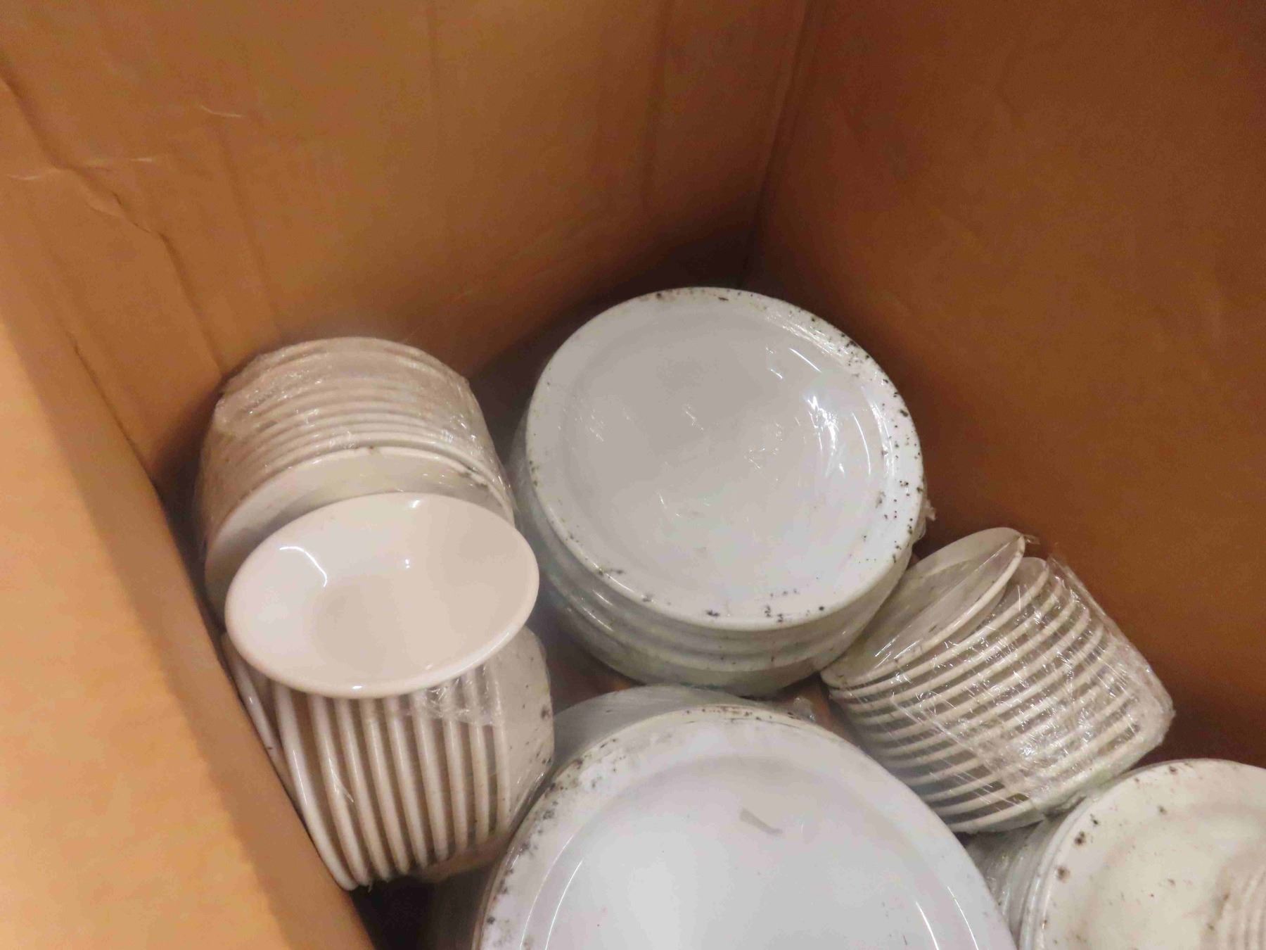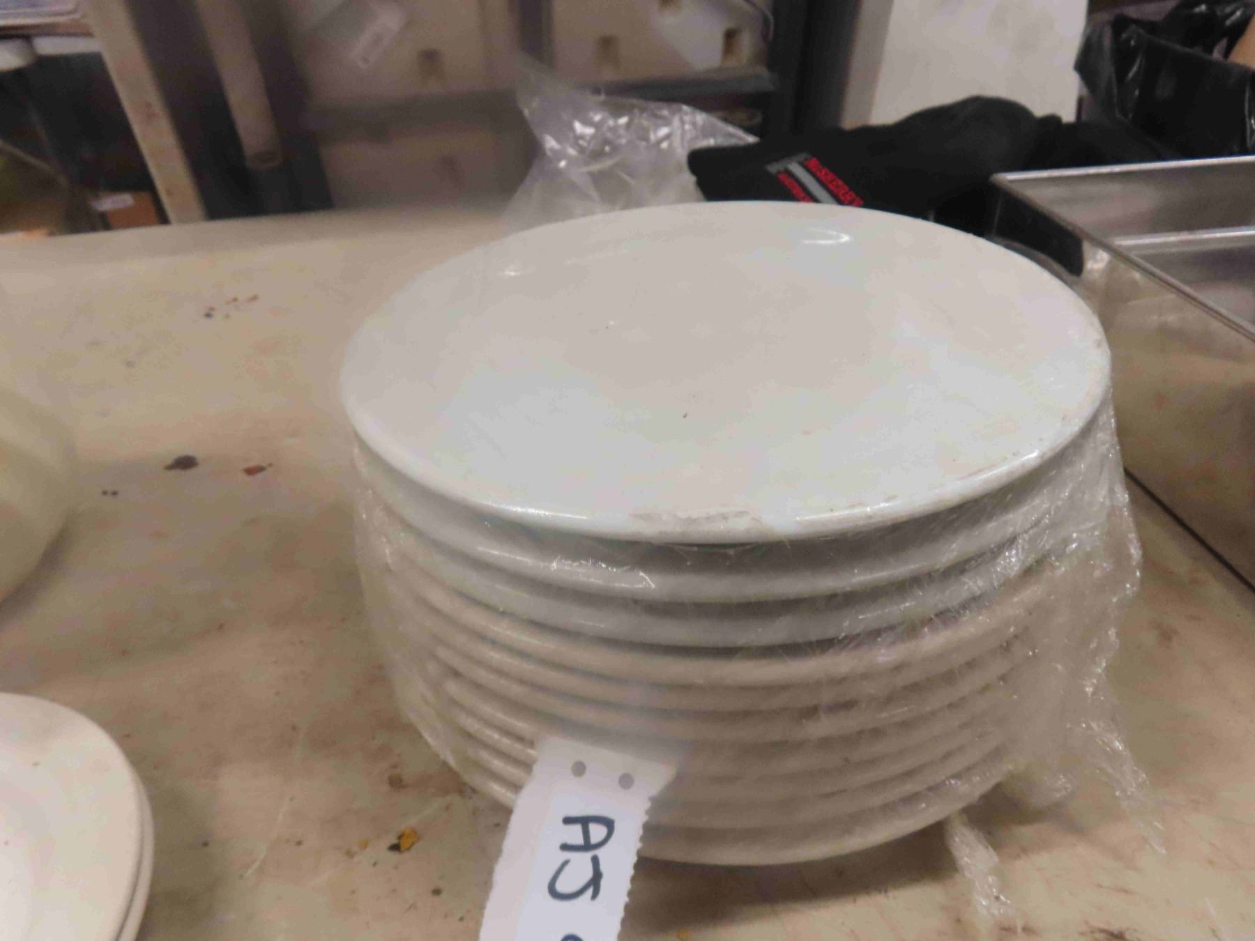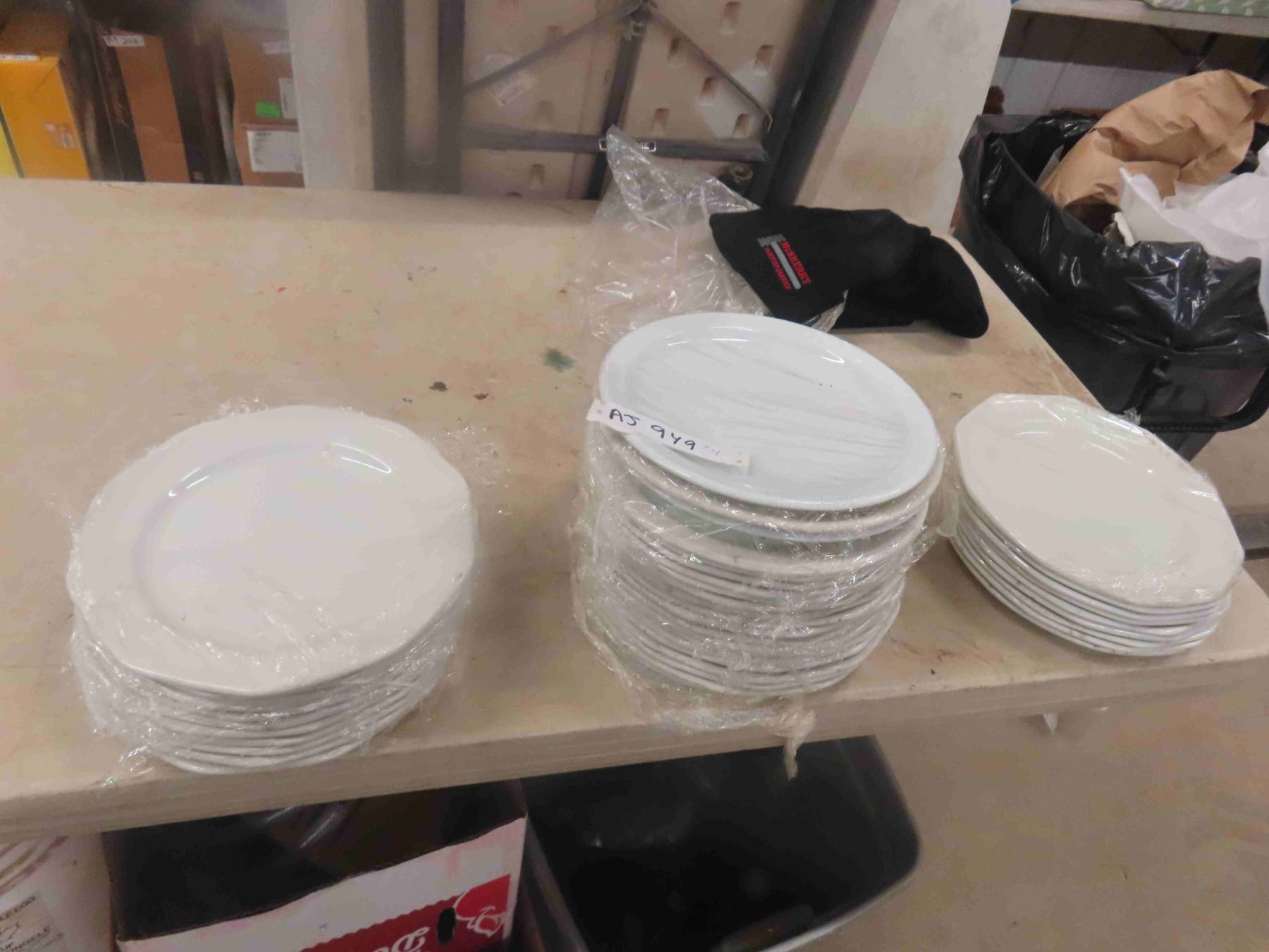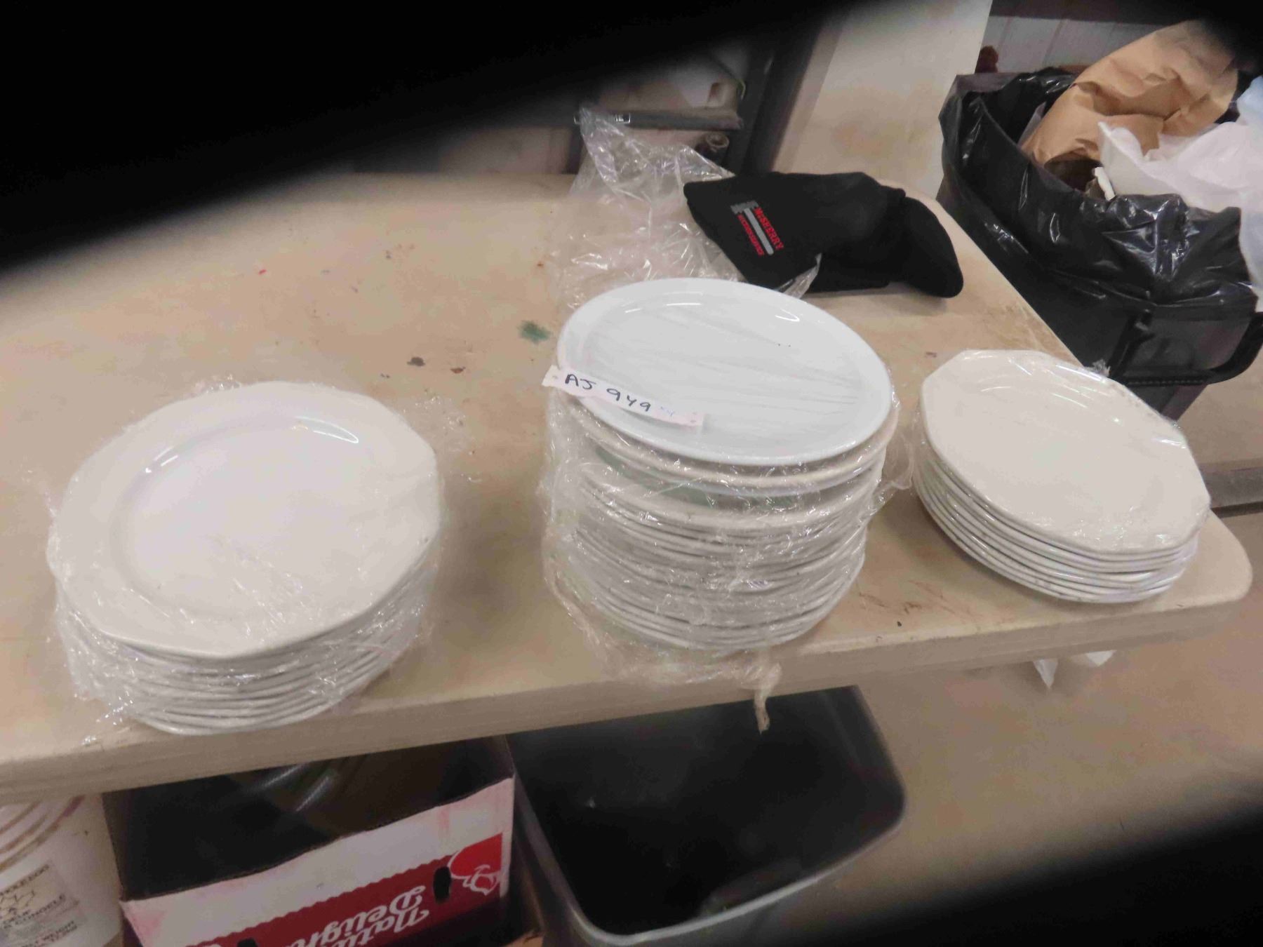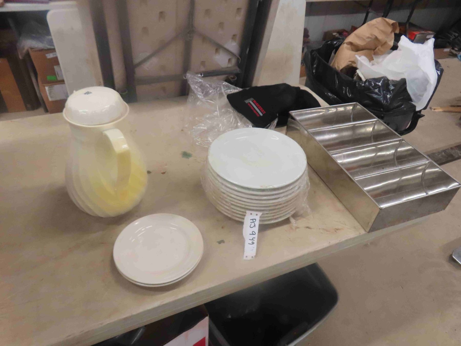 Pallet Lot of Restaurant Dishes, Cups, Trays, Pitchers, Cutlery, Vases, Utensilts, Quantity of Various Sized Plates, Plus