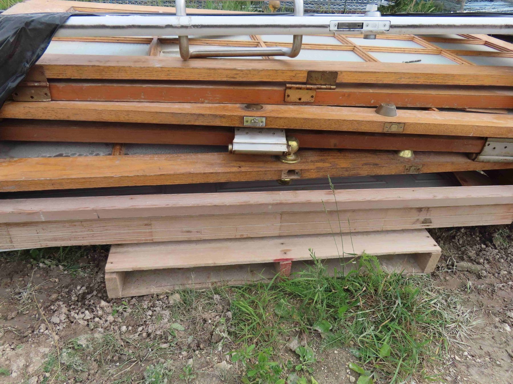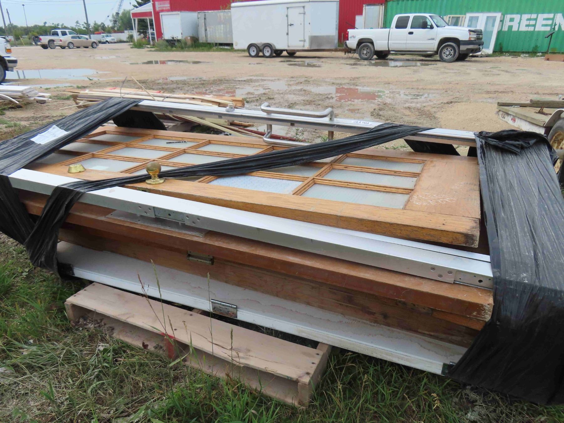 Pallet of Assorted Doors - 1 With Frame - 5 Wood with Multi Glass Panes