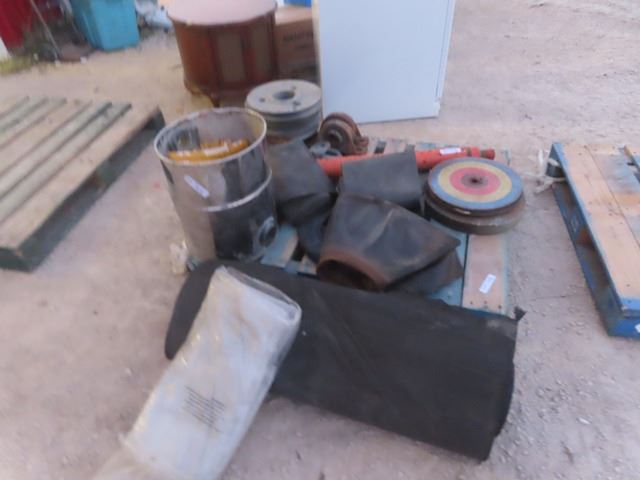 Pallet with Large Bearing, Cutting Discs, Bolts, plus more