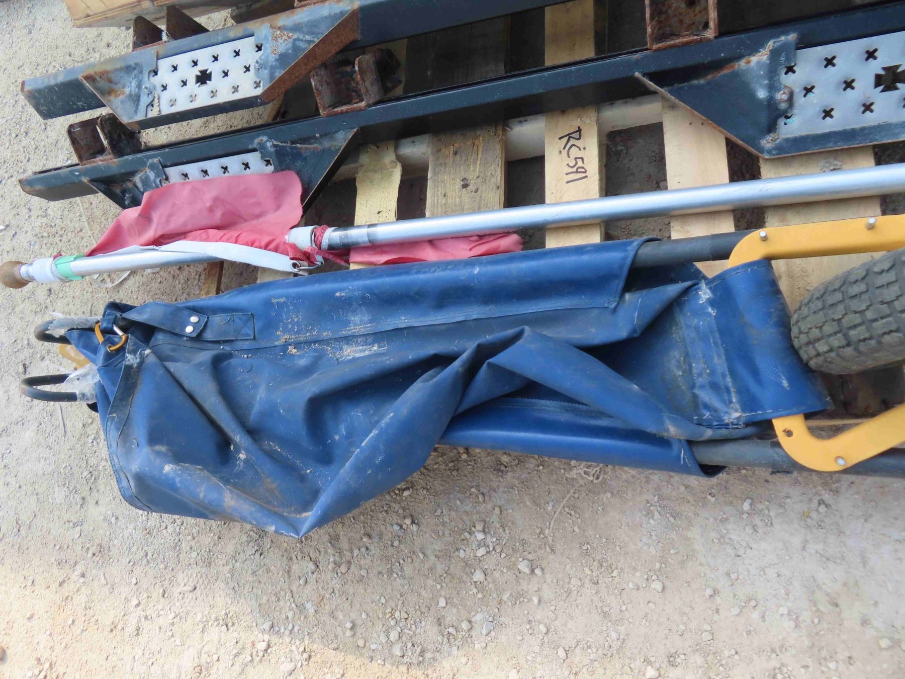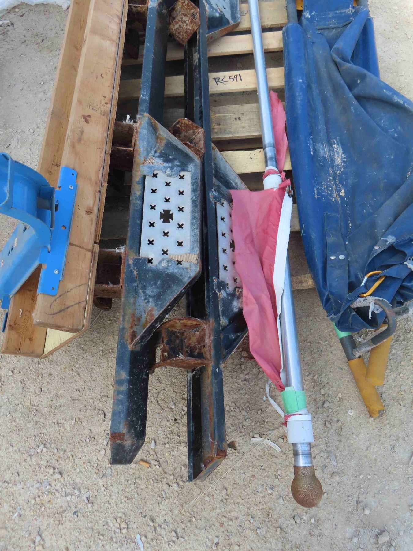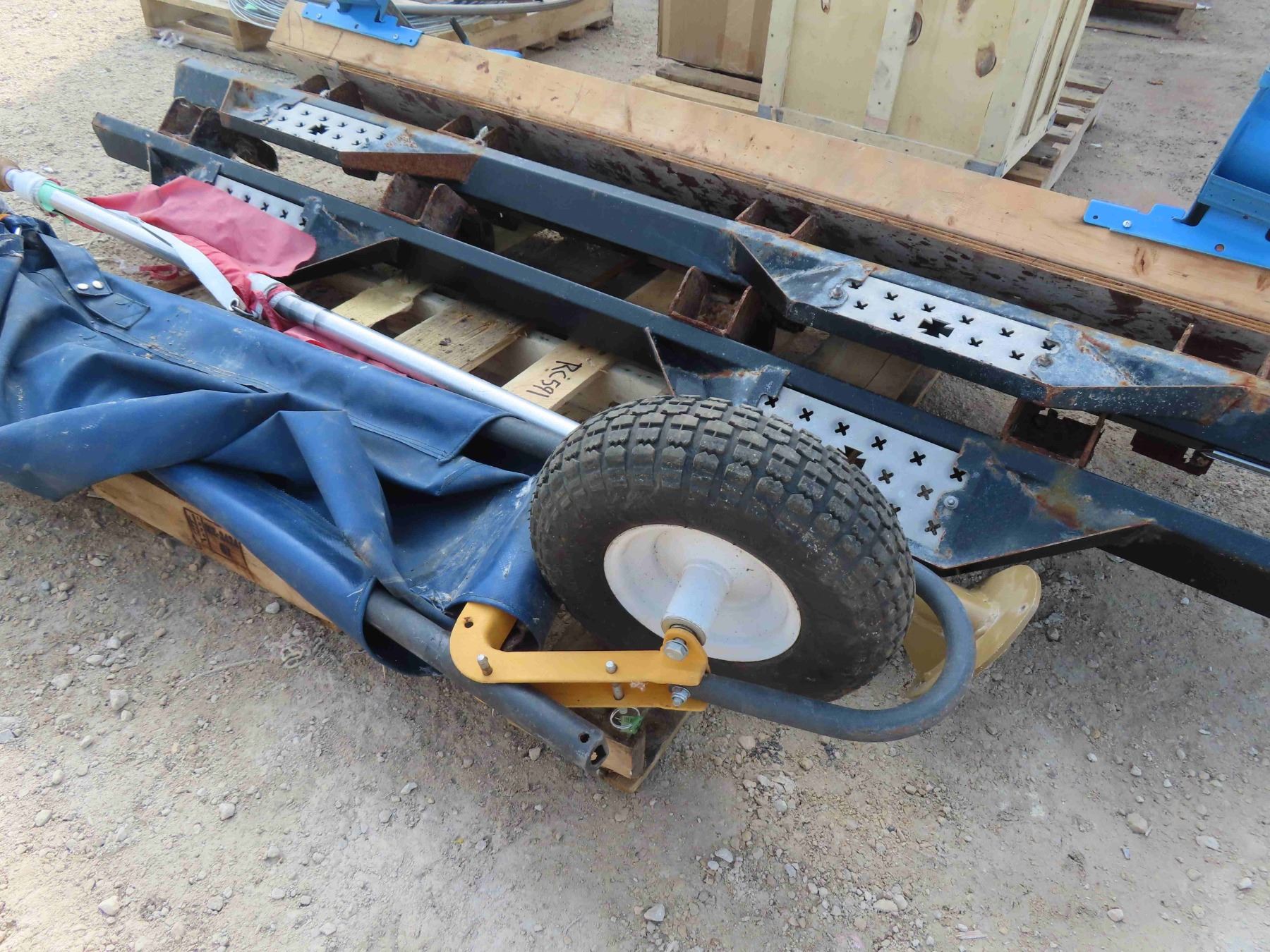 Pallet with Scaffolding Top + Brackets, Pair of Running Boards, Flag Pole, Collapsible Wheel Barrow