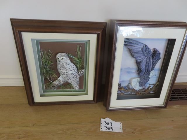 Paper Tulle Owl & Eagle Pictures in Beautiful Frames 17" x 15" & 18" x 14"