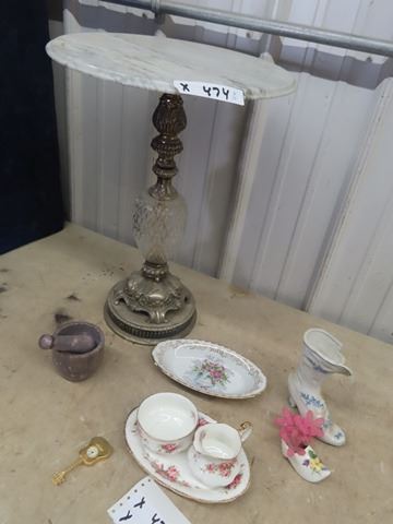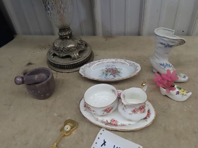 Paragon Cream & Sugar w Tray, Elizabeth Rose, Marble Top Stand, & Morter & Pestle & Motar